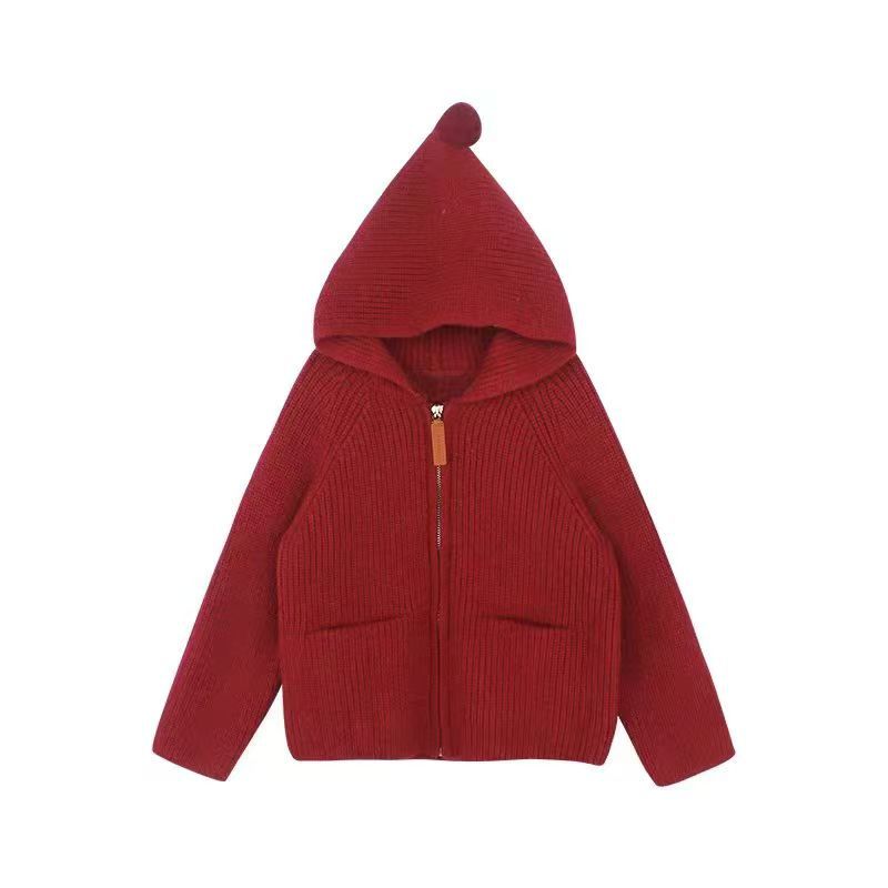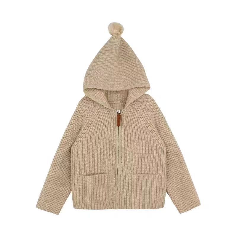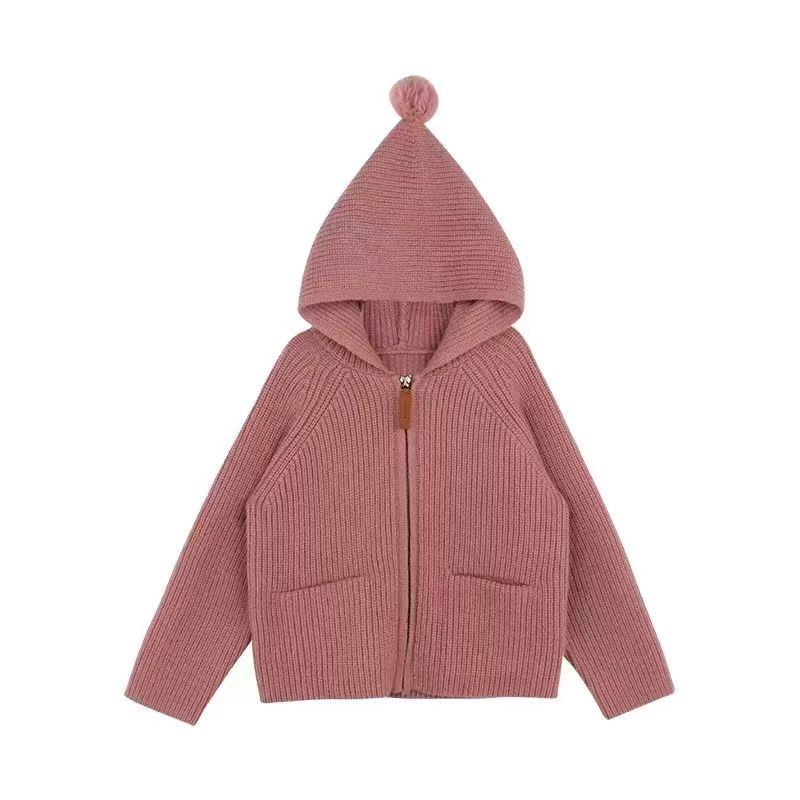 가을 겨울 따뜻한 니트 스웨터 아동용 재킷 귀여운 소녀용 플러시 모자 지퍼형 상의 두꺼운 유아용