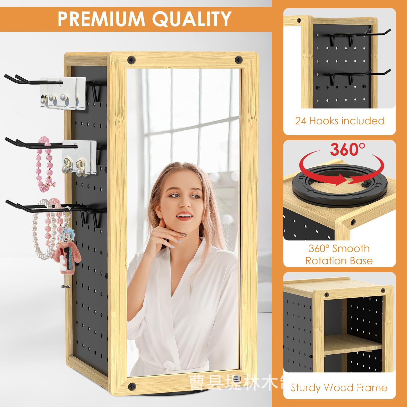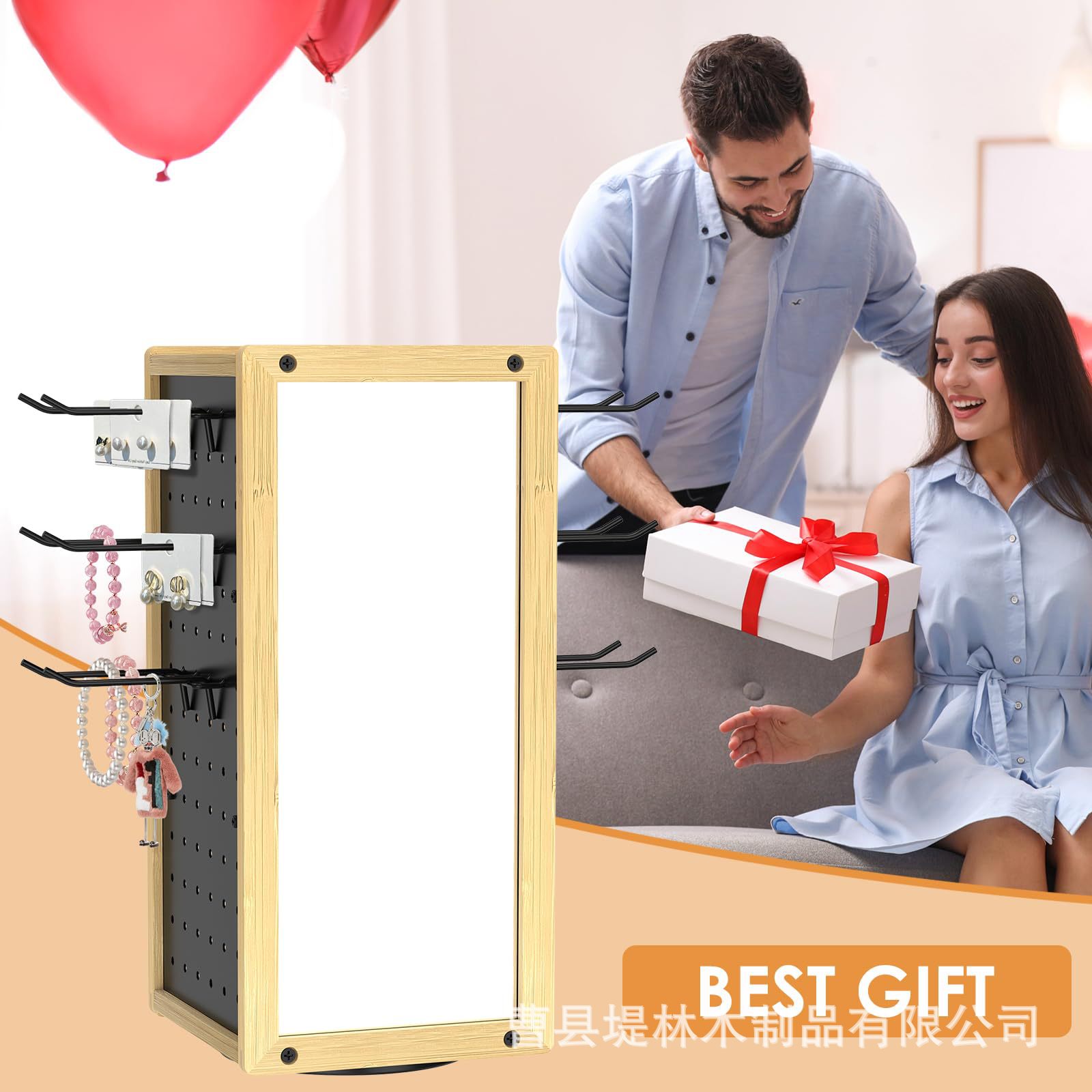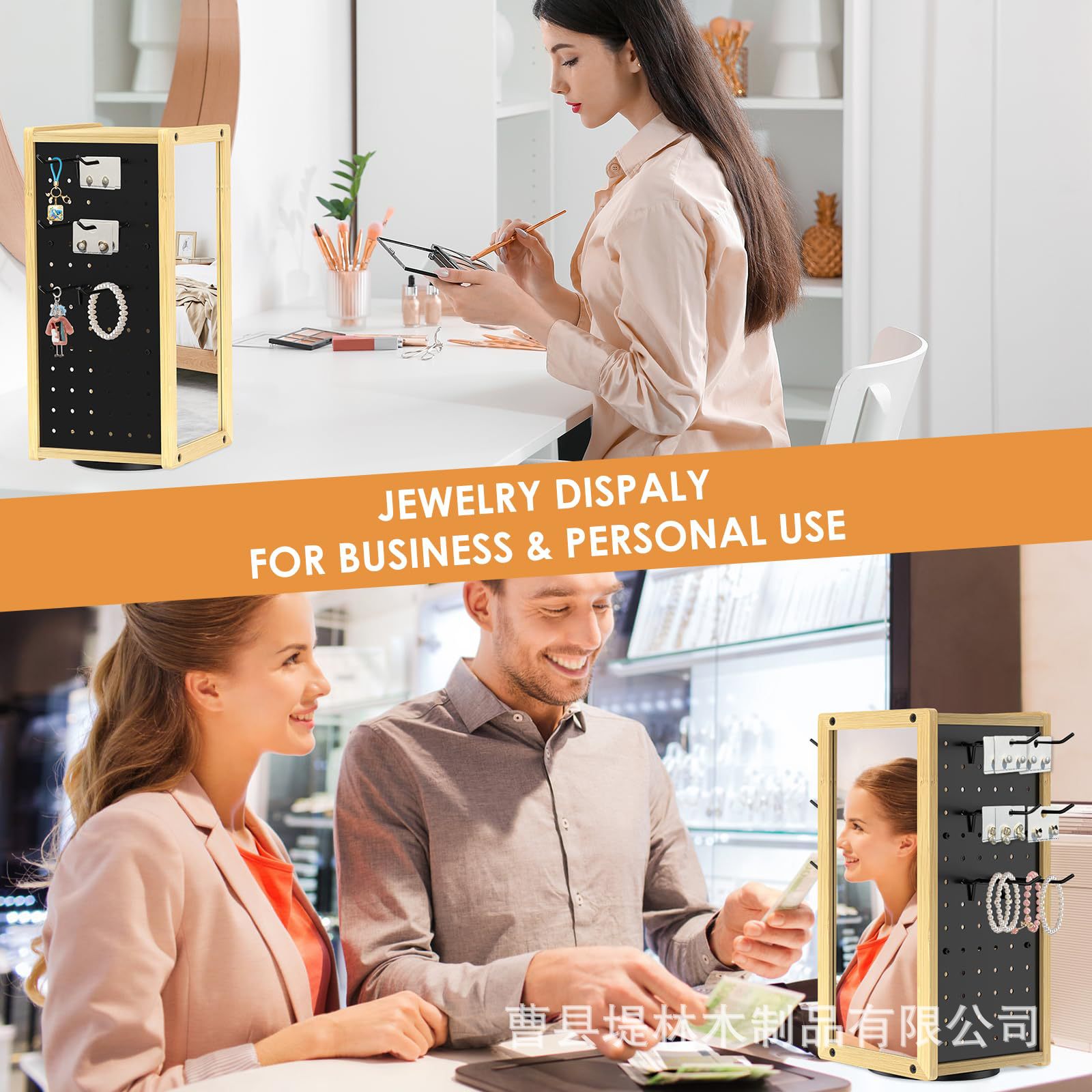 데스크탑 회전식 네일 보드 디스플레이 스탠드 단단한 나무 회전식 조리대 스토리지 랙 거울이있는 조절 가능한 나무 스토리지 랙