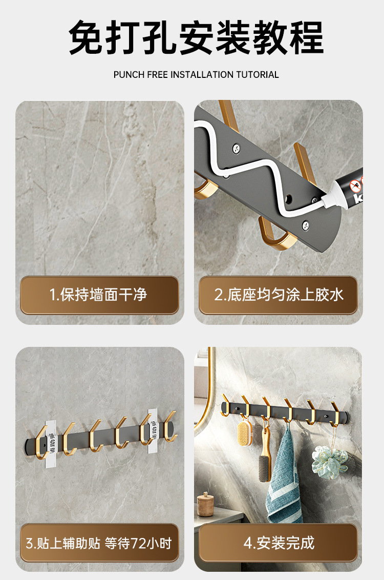 구멍이 없는 국경 간 옷 걸이 후크, 알루미늄 코트 걸이 후크, 주방 접착 후크, 욕실 걸이 후크, 못이 없는 강력한 후크 행 걸이