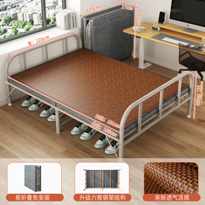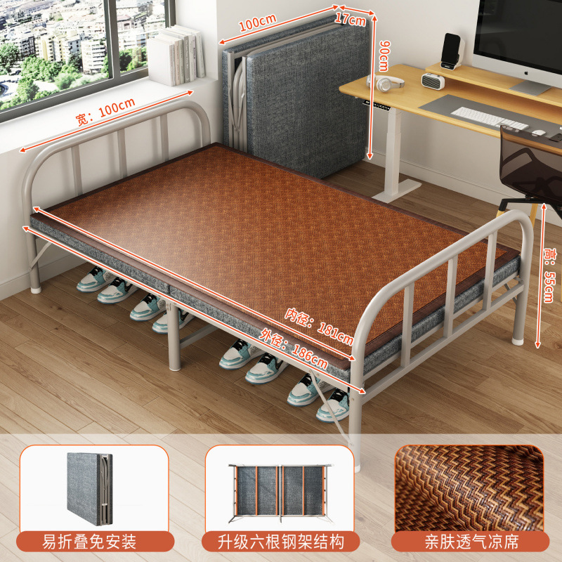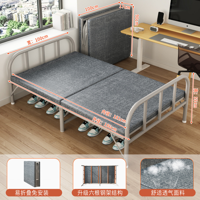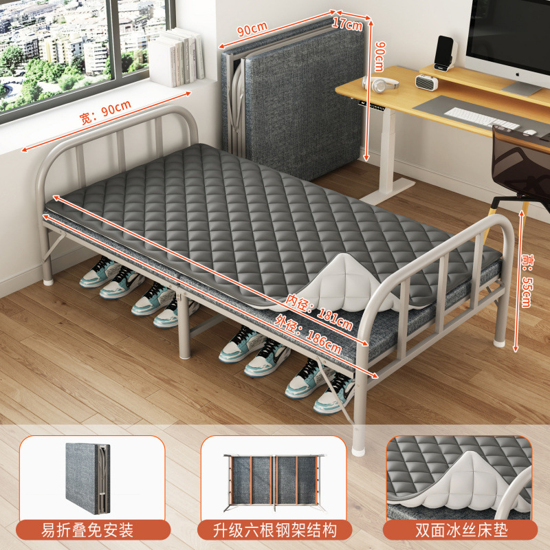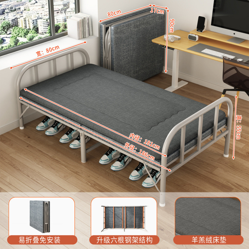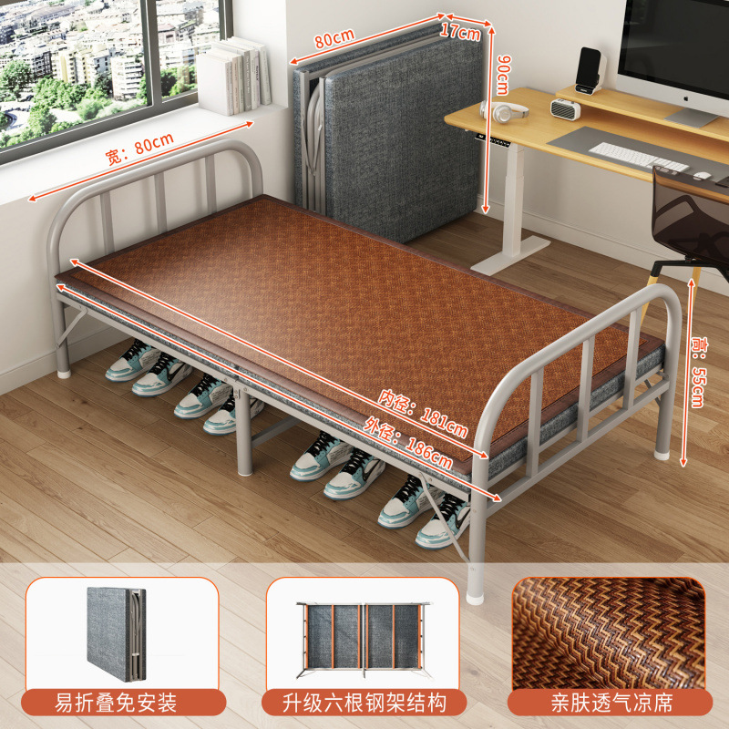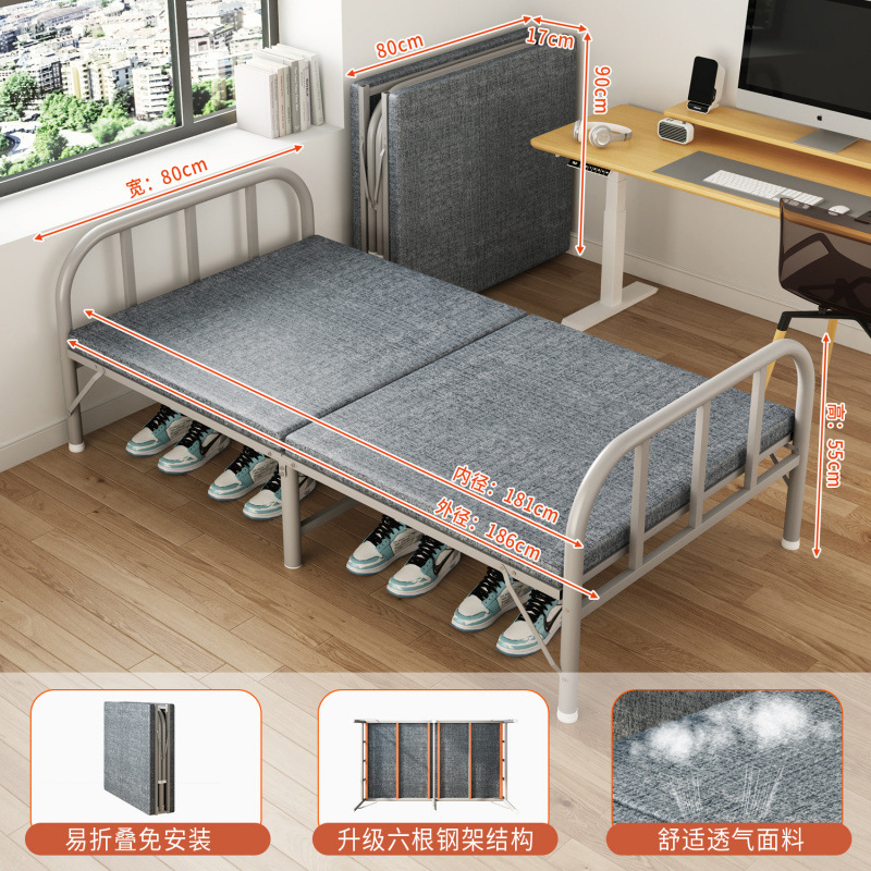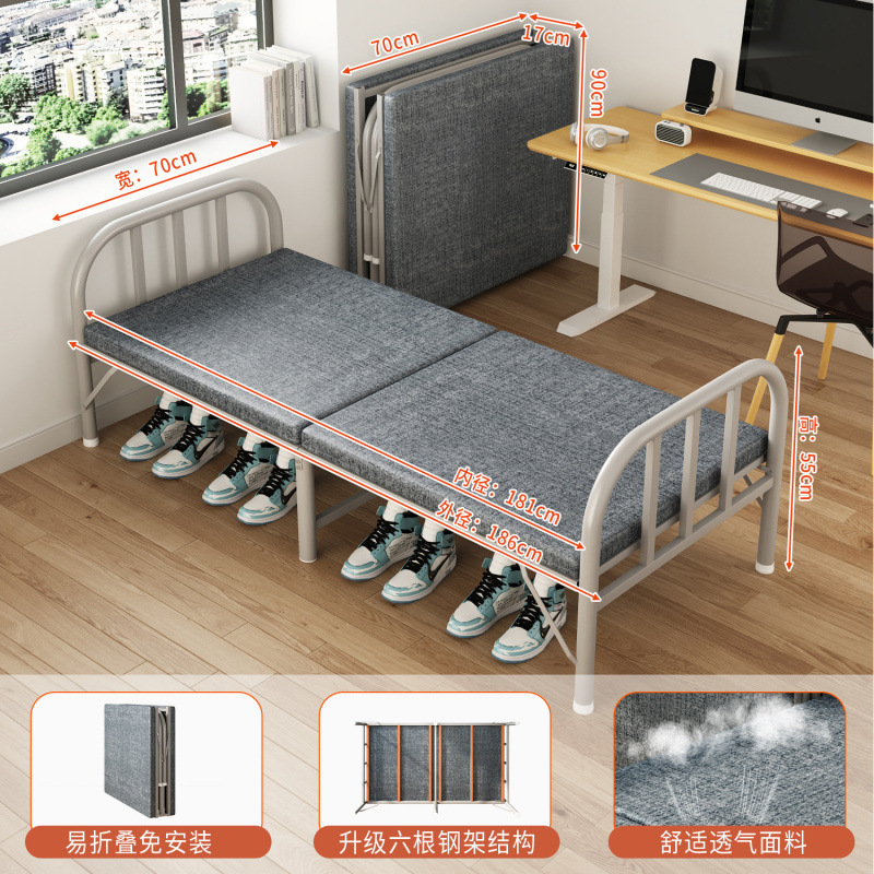 접이식 침대 접이식 싱글 침대 성인 간이 낮잠 철제 침대 가정용 휴대용 사무실 기숙사 임대 집 낮잠