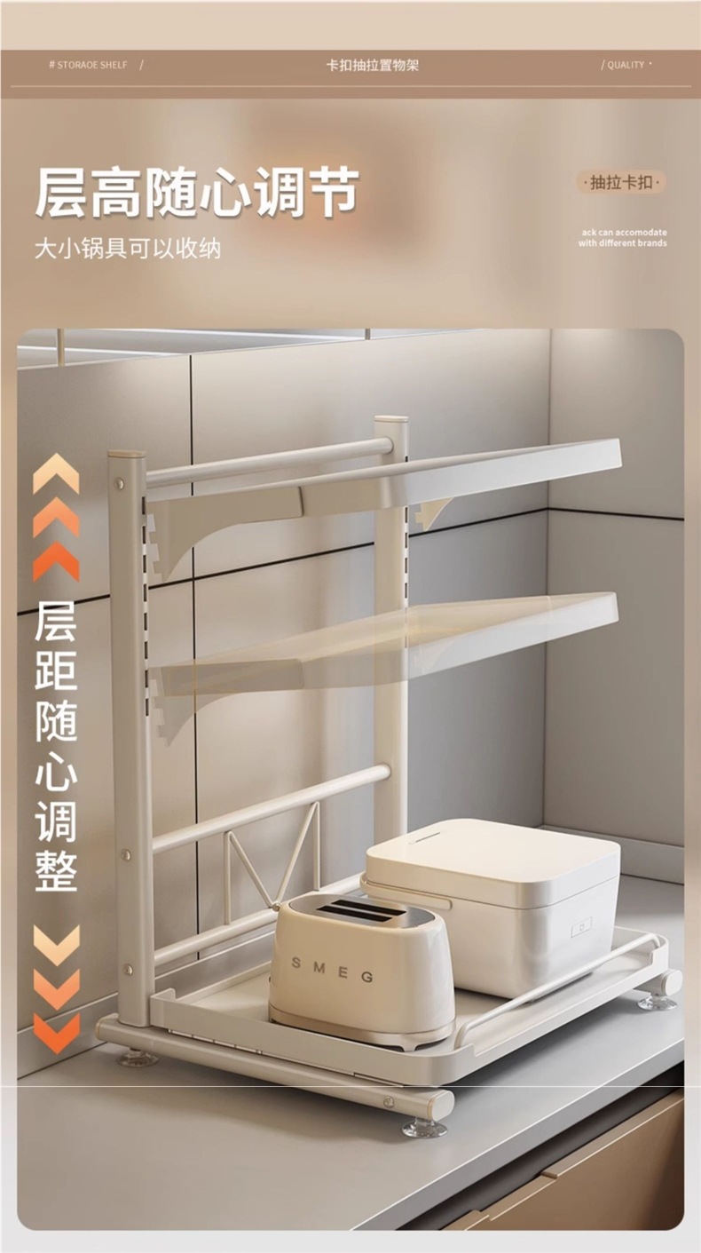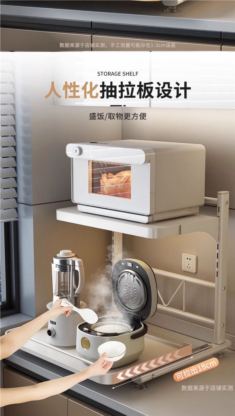 주방용 풀아웃 밥솥 수납선반, 오븐, 전자레인지 등을 갖춘 다기능 조리대 일체형 수납선반스토어 가기