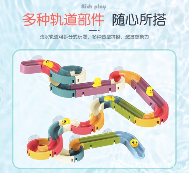 DIY 목욕 어린이 장난감 조립 트랙 볼 슬라이딩 어린이 교육 재미 목욕 오리 빌딩 블록