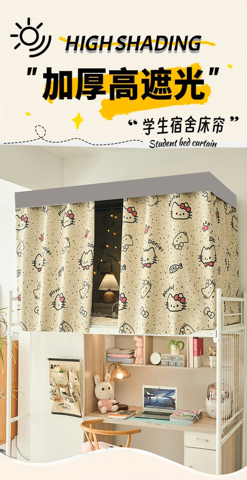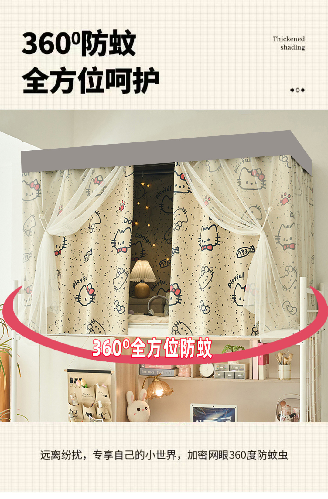 학생 기숙사 전체 차광 침대 커튼, 상단 침대 전체로 둘러싸인 여성 기숙사 하단 침대 커튼, 만화 불투명 침대 커튼스토어 가기