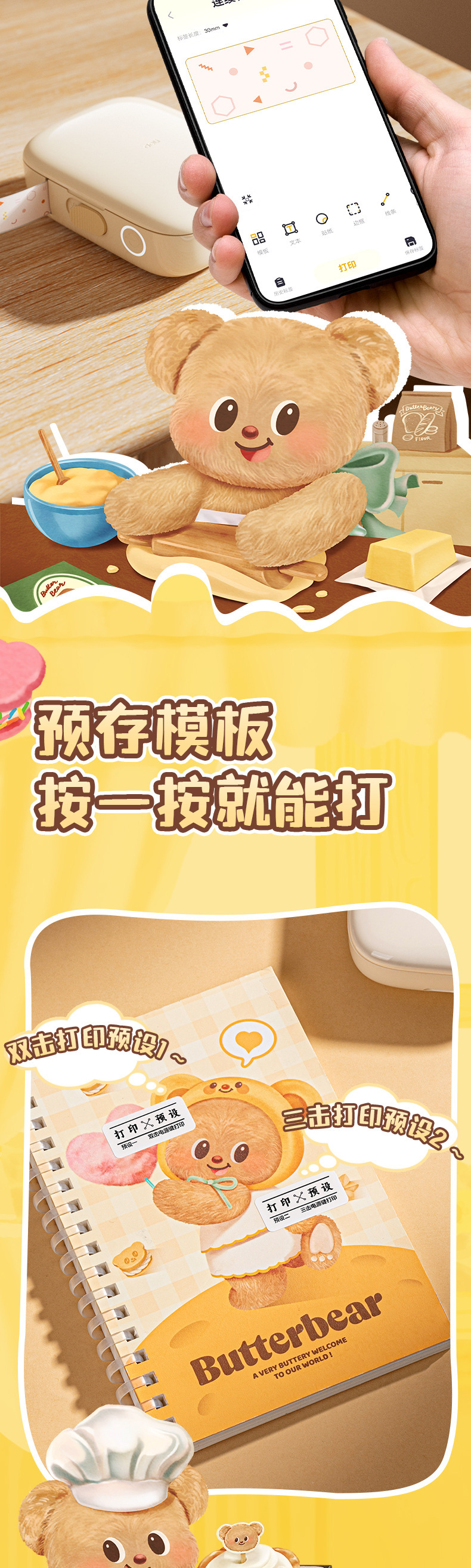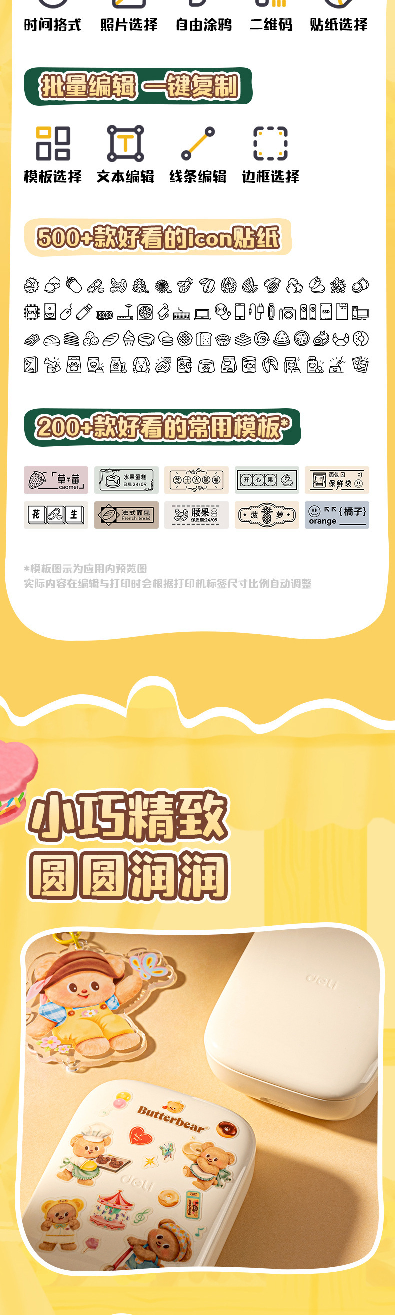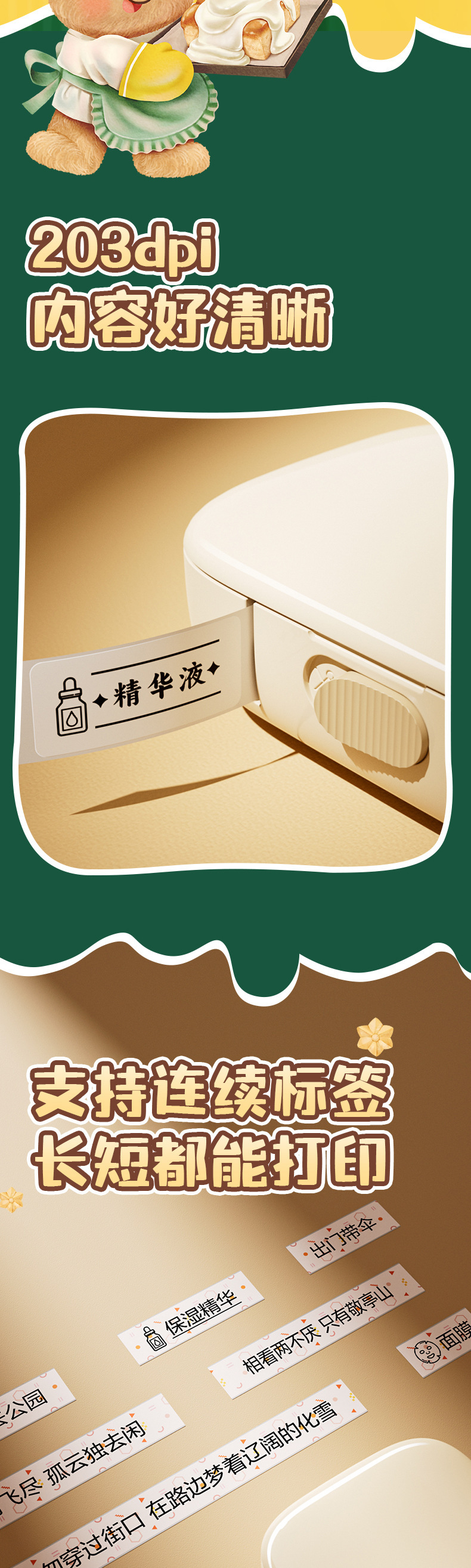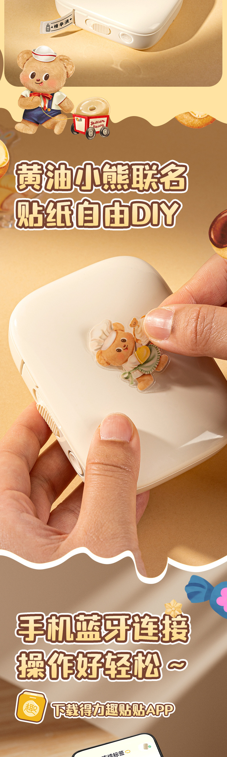 Deli HY301 버터 베어 개인 라벨 기계 열 블루투스 연결 소형 휴대용 라벨 프린터