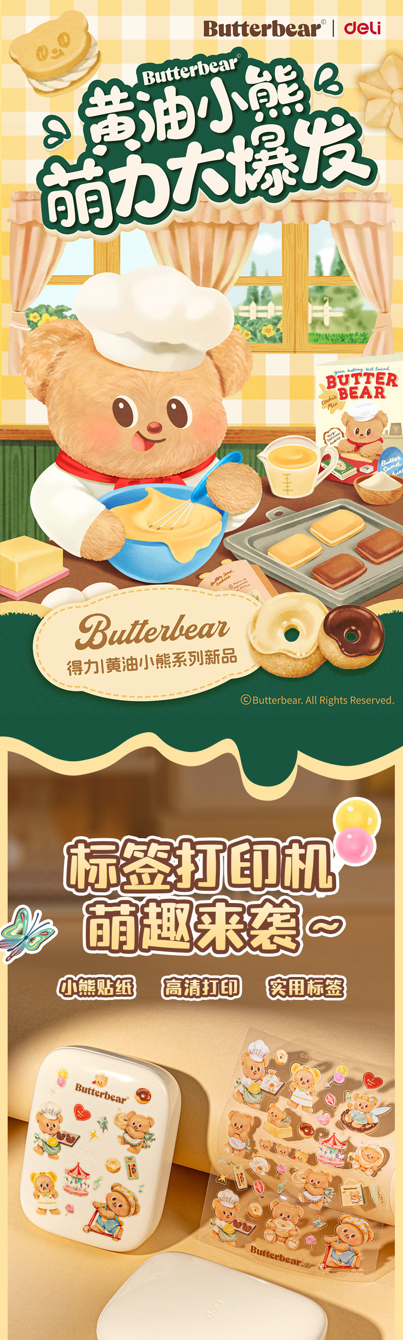 Deli HY301 버터 베어 개인 라벨 기계 열 블루투스 연결 소형 휴대용 라벨 프린터스토어 가기