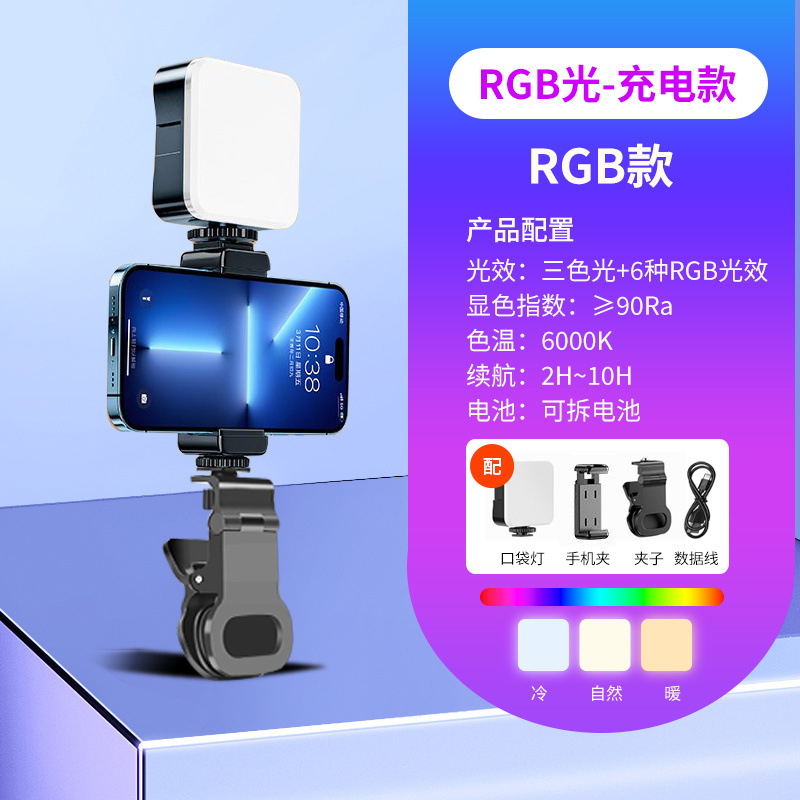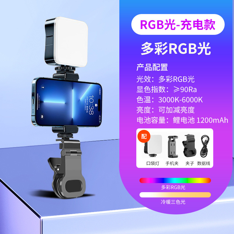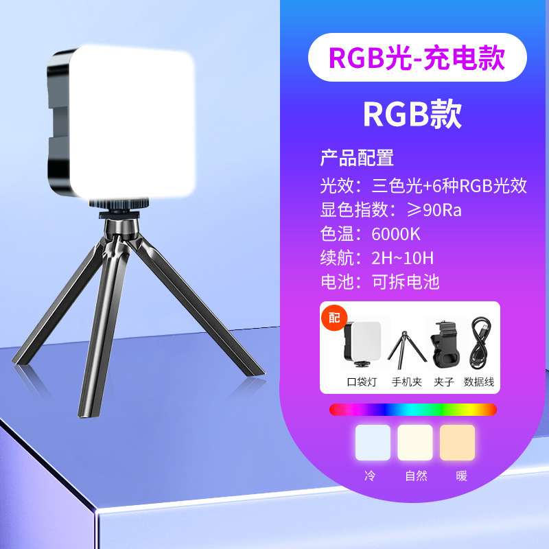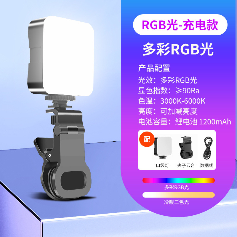 새로운 미니 필 라이트 휴대용 사진 사진 rgb 휴대 전화 라이브 방송 셀카 조명 포켓 라이트 led 분위기 조명