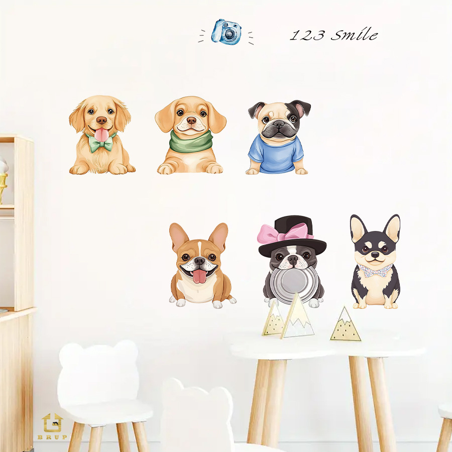 HS1288H 애완 동물 강아지 귀여운 만화 사진 자체 접착 벽 스티커 애완 동물 가게 침실 어린이 방 장식 스티커
