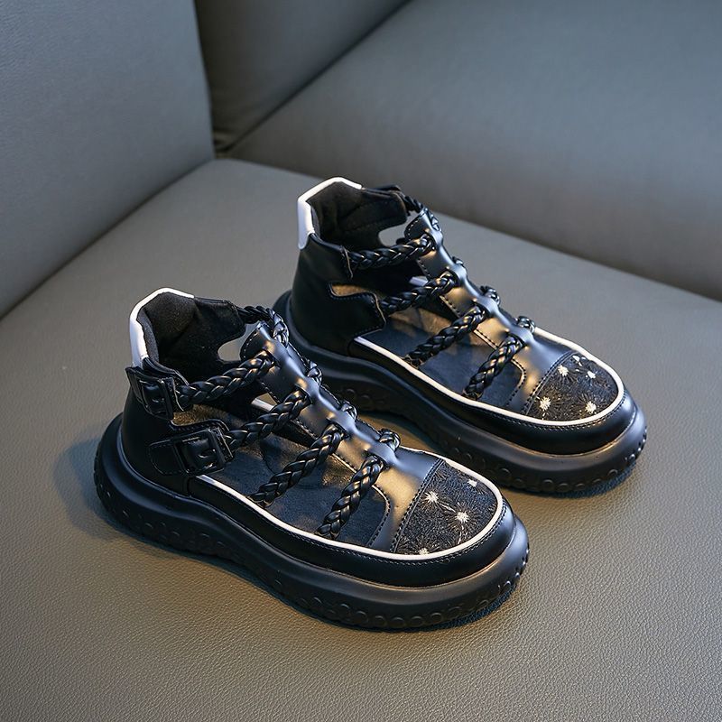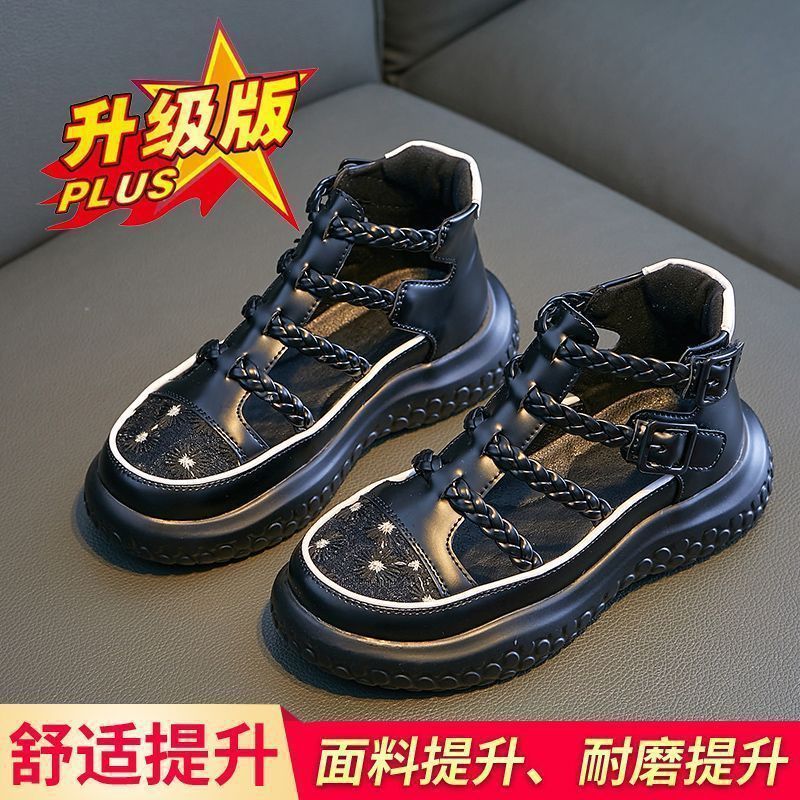 여자 샌들 여름 스타일 2025 새로운 패션 어린이 여자 부드러운 밑창 발가락 샌들 중형 및 대형 어린이 중공 통기성 신발