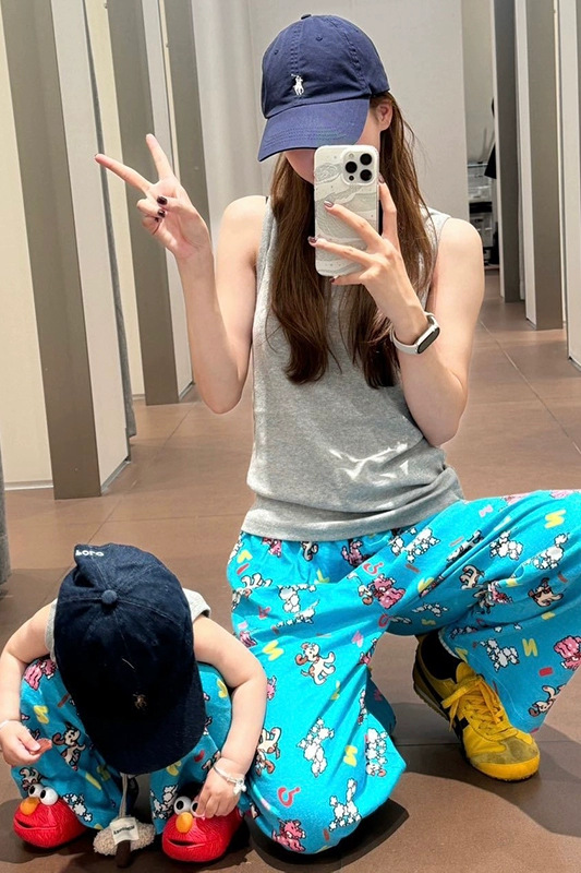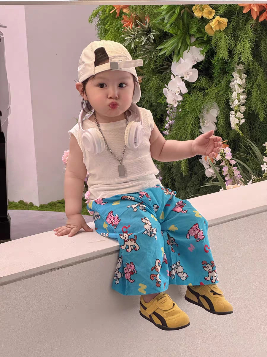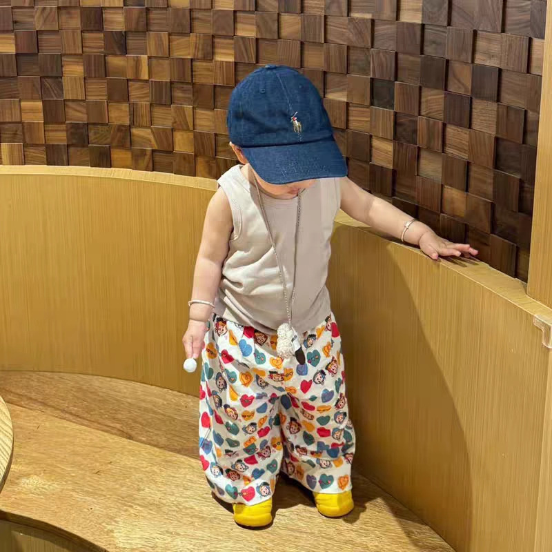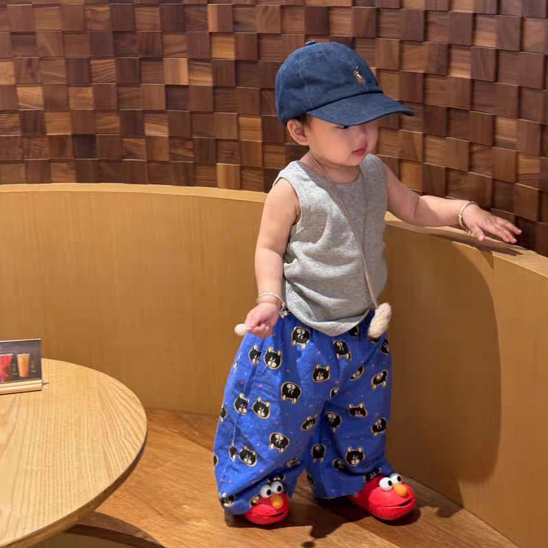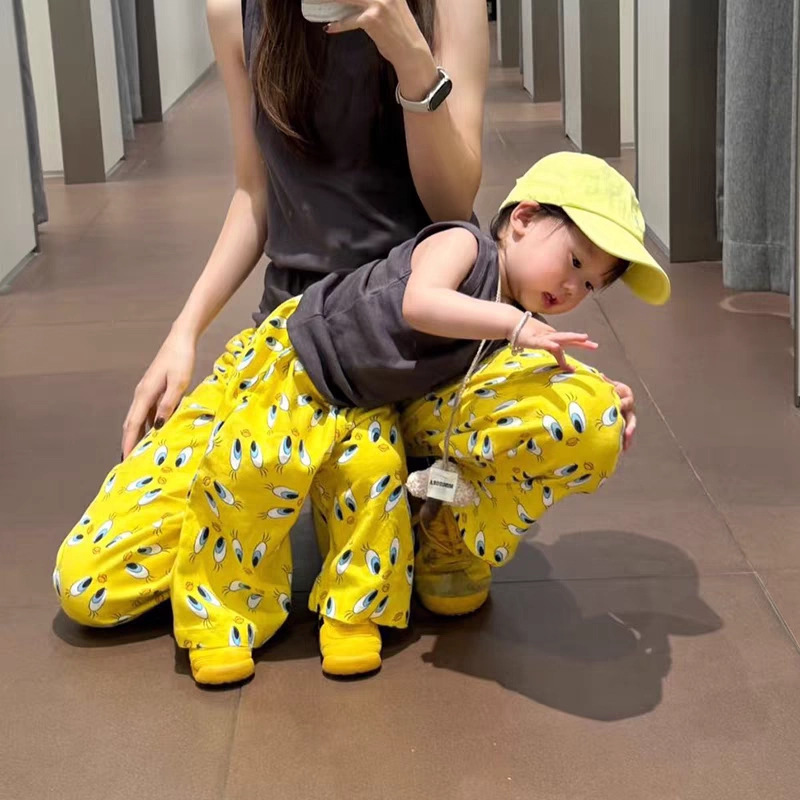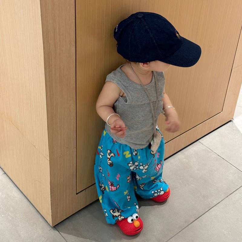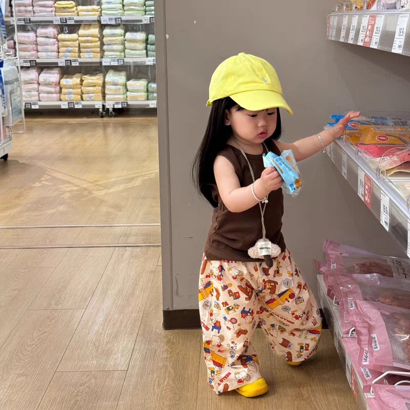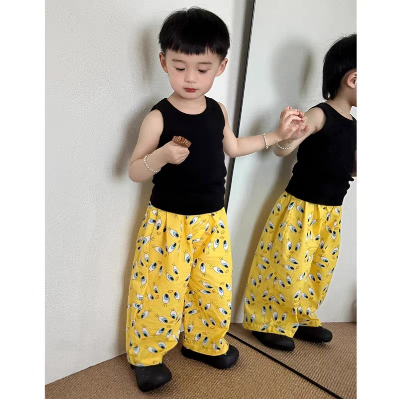 여름 어린이 만화 인쇄 한국 스타일 아기 에어컨 바지 느슨한 캐주얼 아기 소년과 소녀 넓은 다리 모기 방지 바지스토어 가기