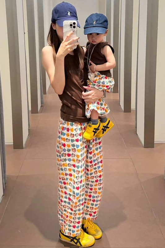 • a680 올오버 프린트 팬츠 - 살구 러브팬츠