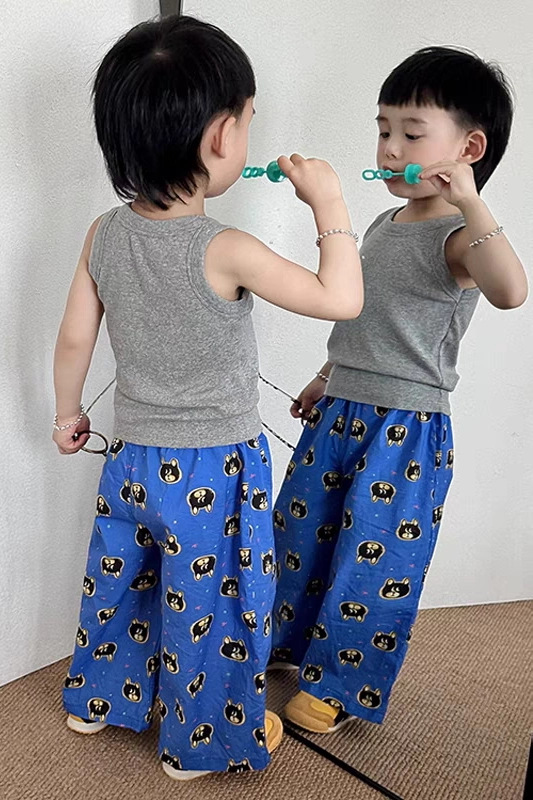 여름 어린이 만화 인쇄 한국 스타일 아기 에어컨 바지 느슨한 캐주얼 아기 소년과 소녀 넓은 다리 모기 방지 바지