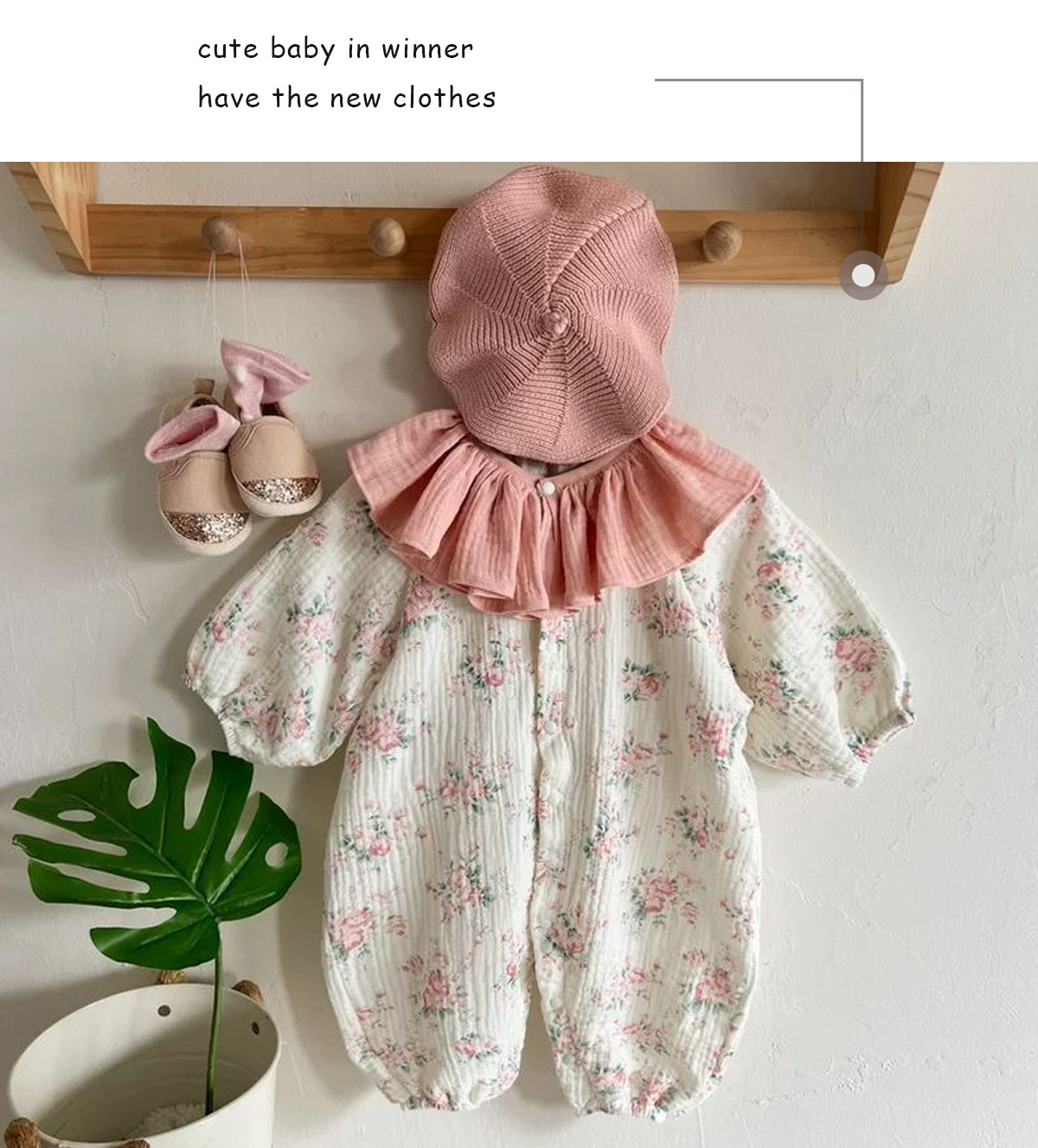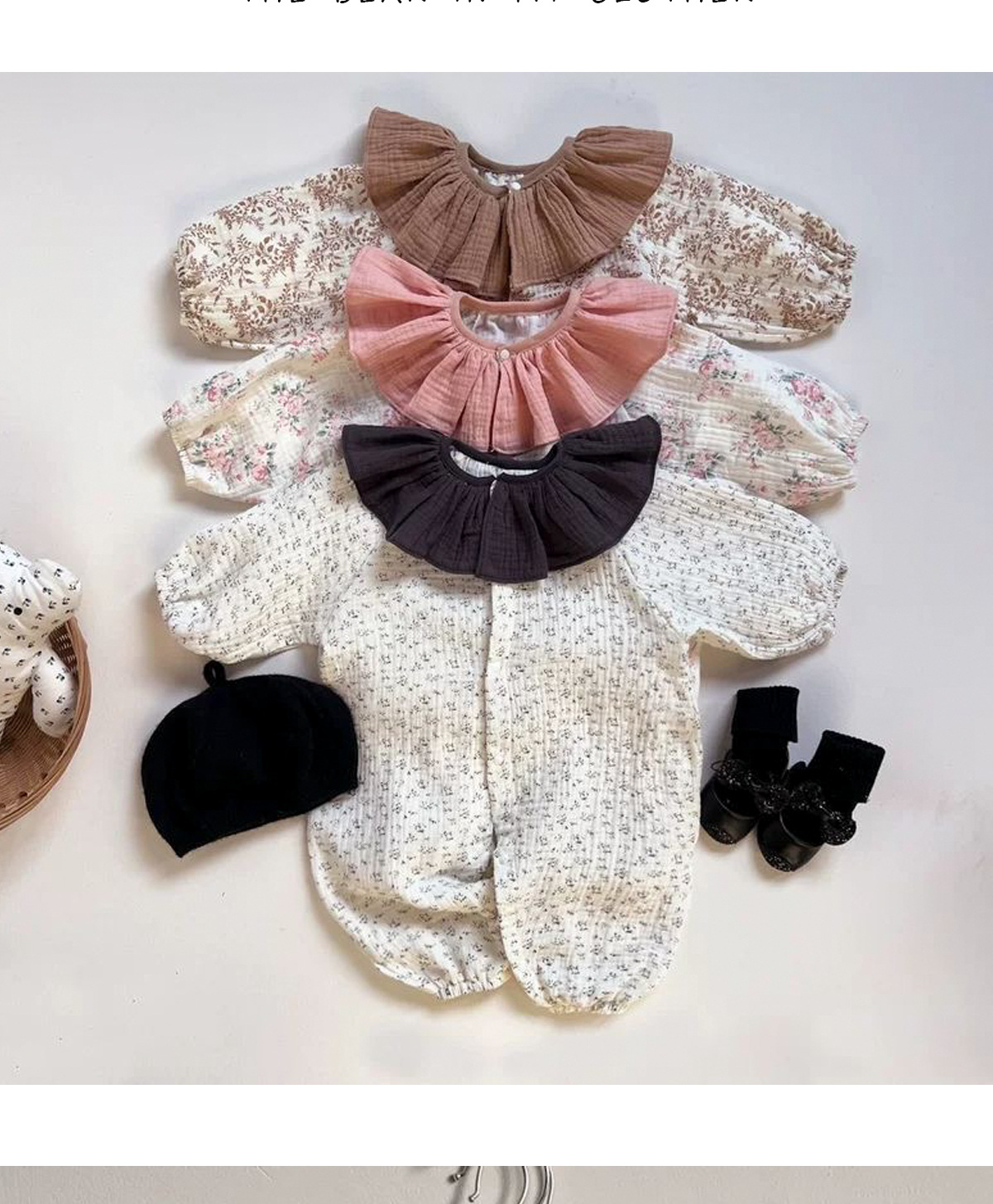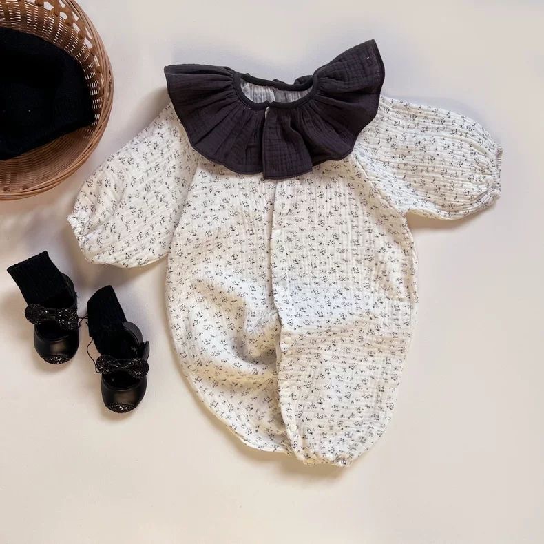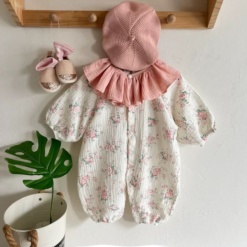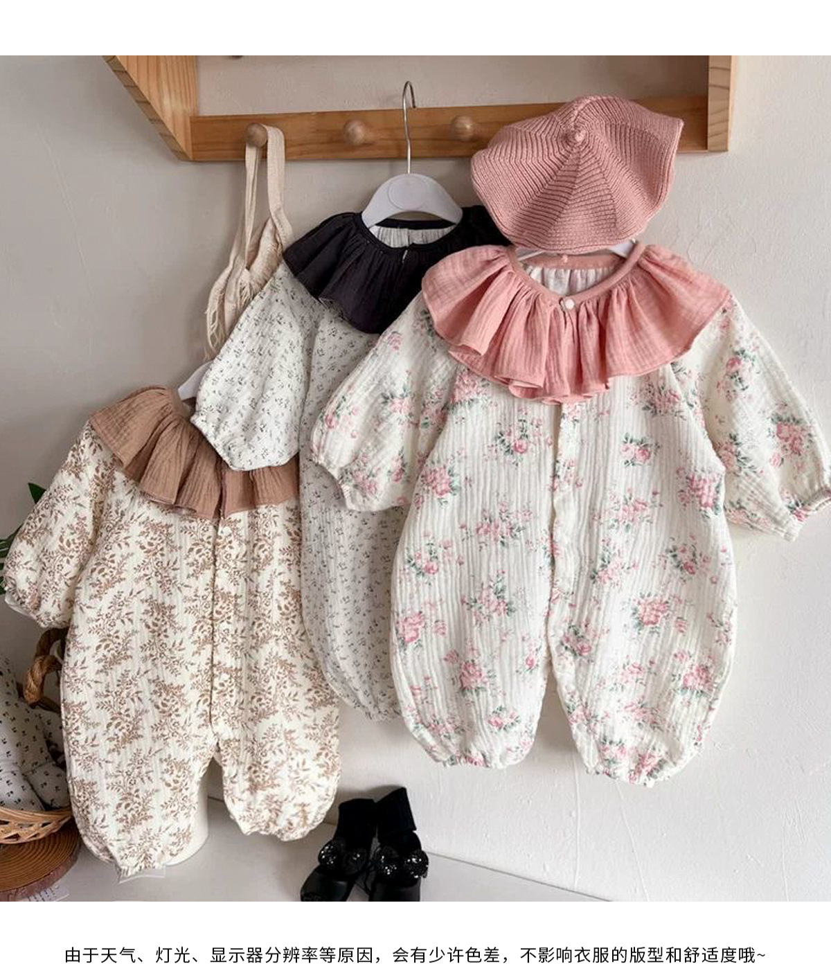 한국식 작은 꽃무늬 큰 인형 칼라 귀여운 긴팔 크롤링 슈트 봄과 가을 새로운 숲 스타일 귀여운 홈 점프 슈트 편안함