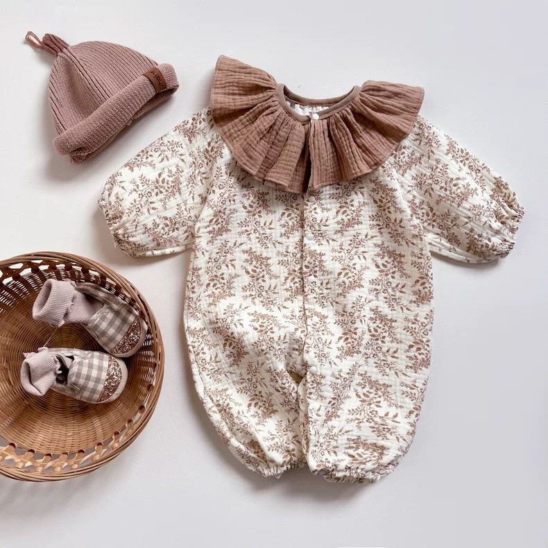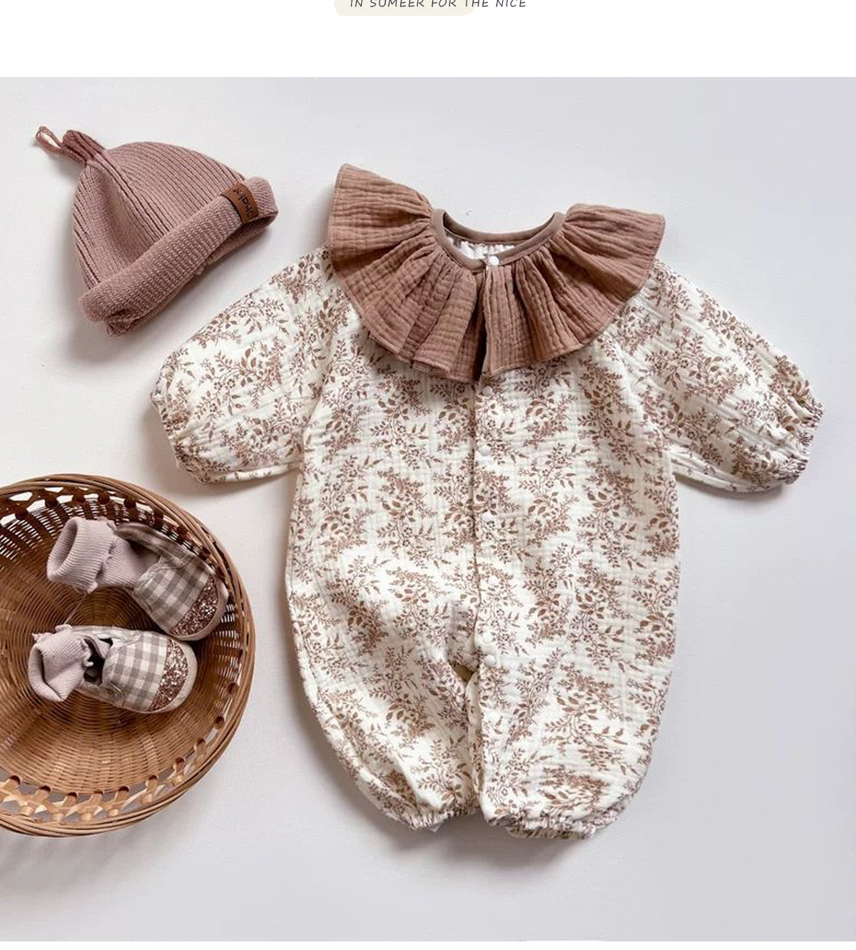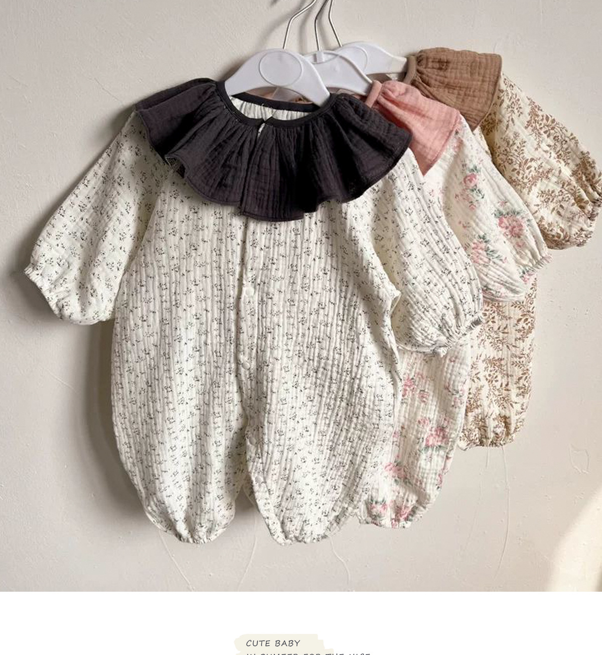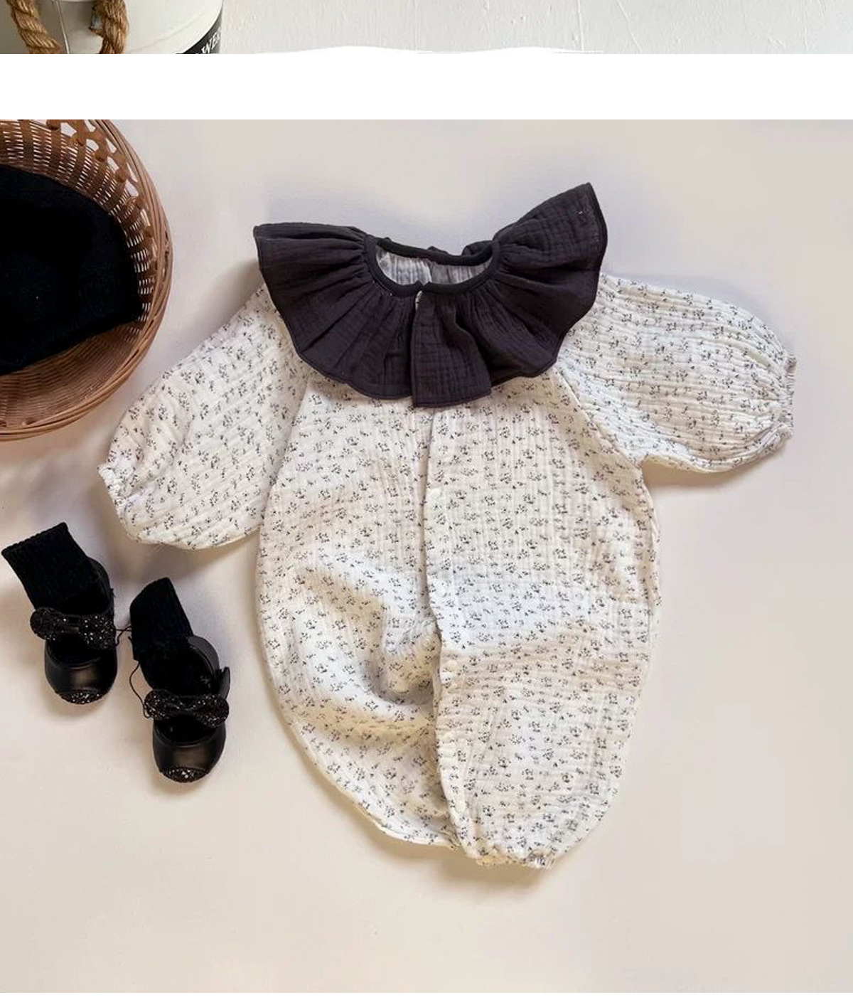 한국식 작은 꽃무늬 큰 인형 칼라 귀여운 긴팔 크롤링 슈트 봄과 가을 새로운 숲 스타일 귀여운 홈 점프 슈트 편안함