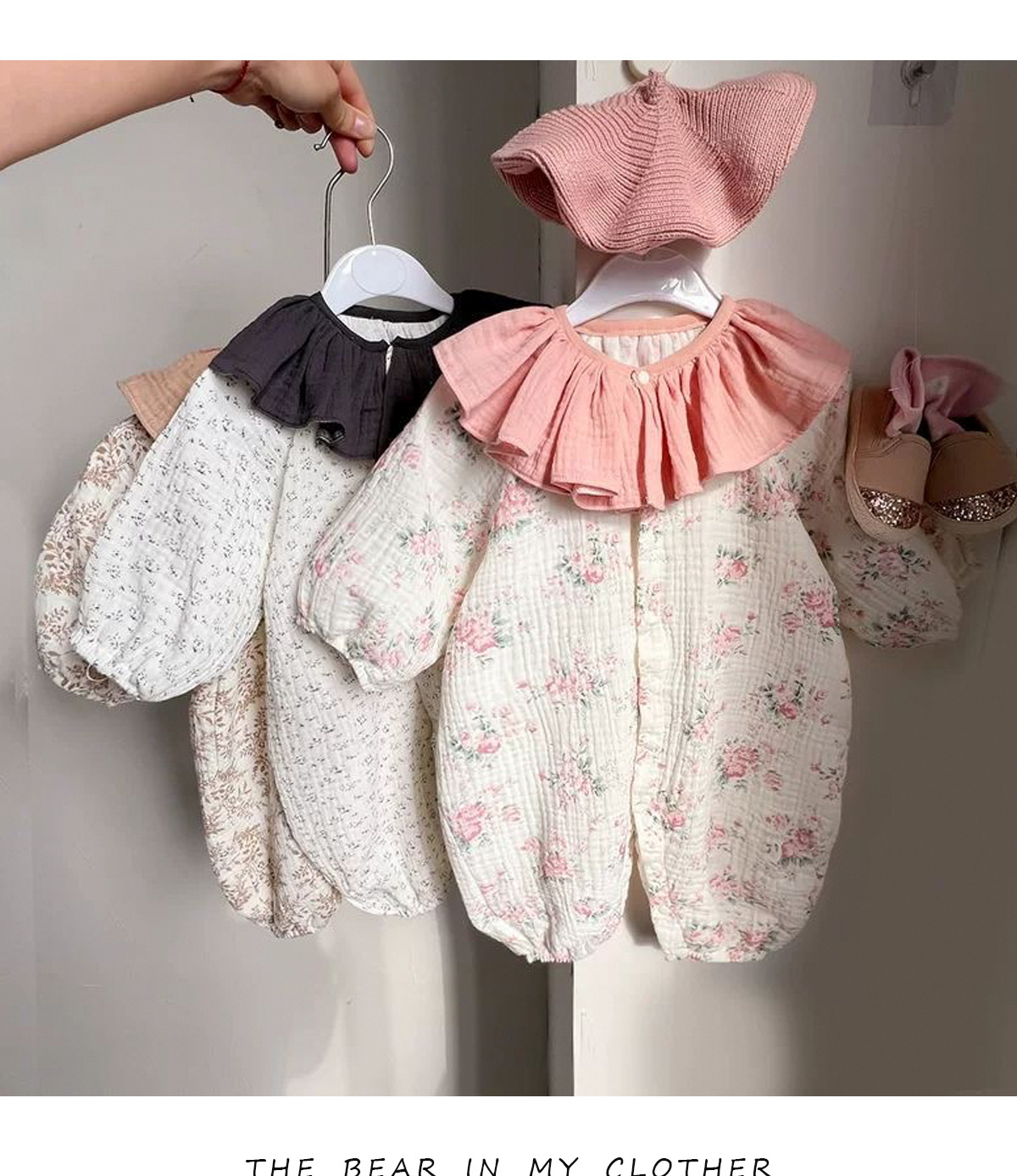 한국식 작은 꽃무늬 큰 인형 칼라 귀여운 긴팔 크롤링 슈트 봄과 가을 새로운 숲 스타일 귀여운 홈 점프 슈트 편안함스토어 가기