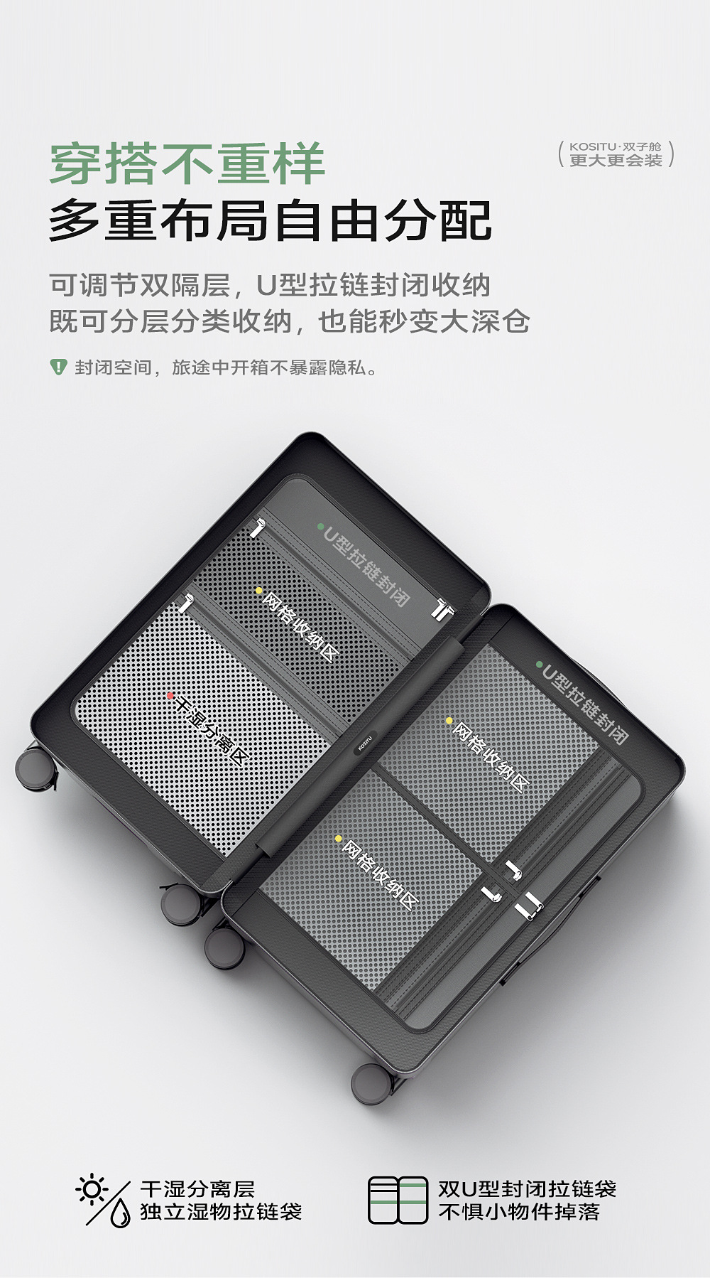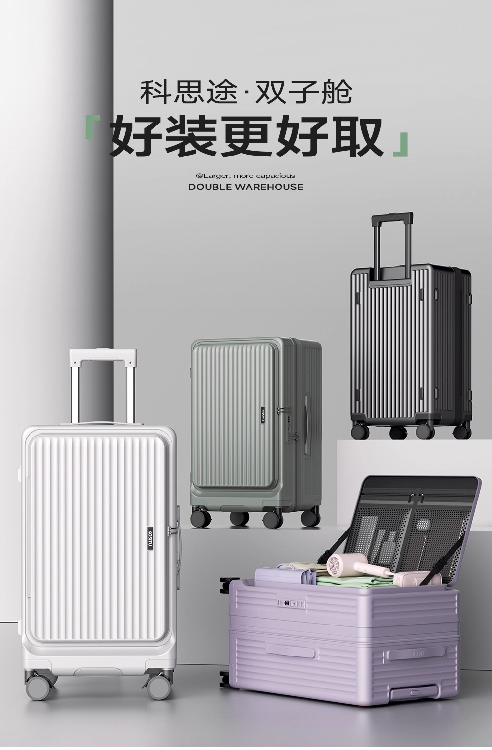 COSTU 트윈 캐빈 새로운 더블 오픈 커버 가방 측면 오픈 커버 확장 대용량 탑승 가방 여성용 가방 남성용스토어 가기