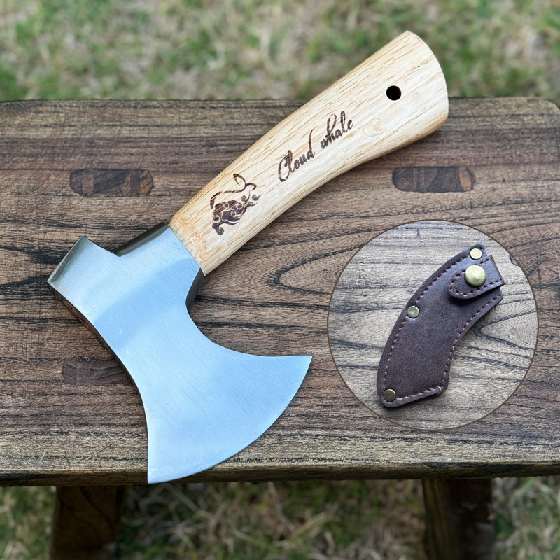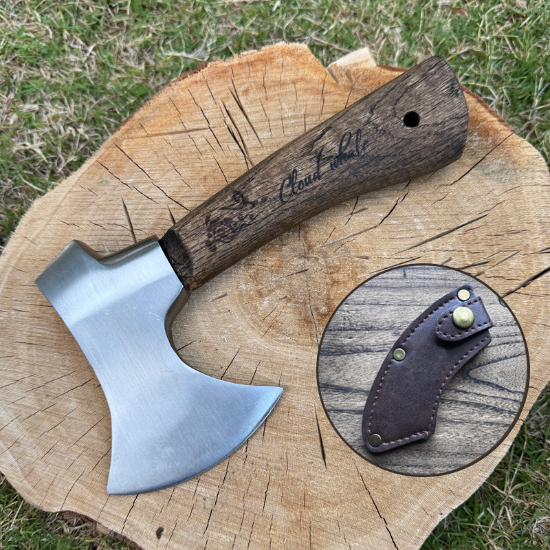 • 소형 회오리 도끼-[탄화 손잡이]-미세 광택 + 가죽 케이스