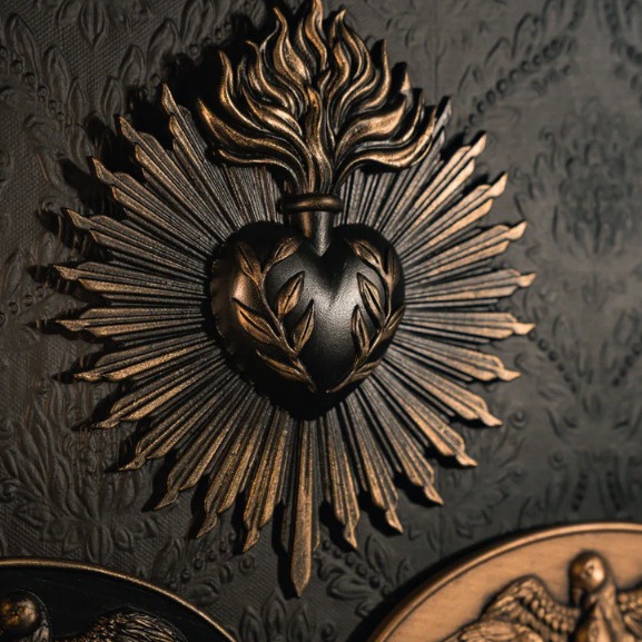 국경을 넘는 신제품 고딕 성심 불꽃 플라크 양각 벽걸이 수지 장식품 아마존 인기 장식 걸이