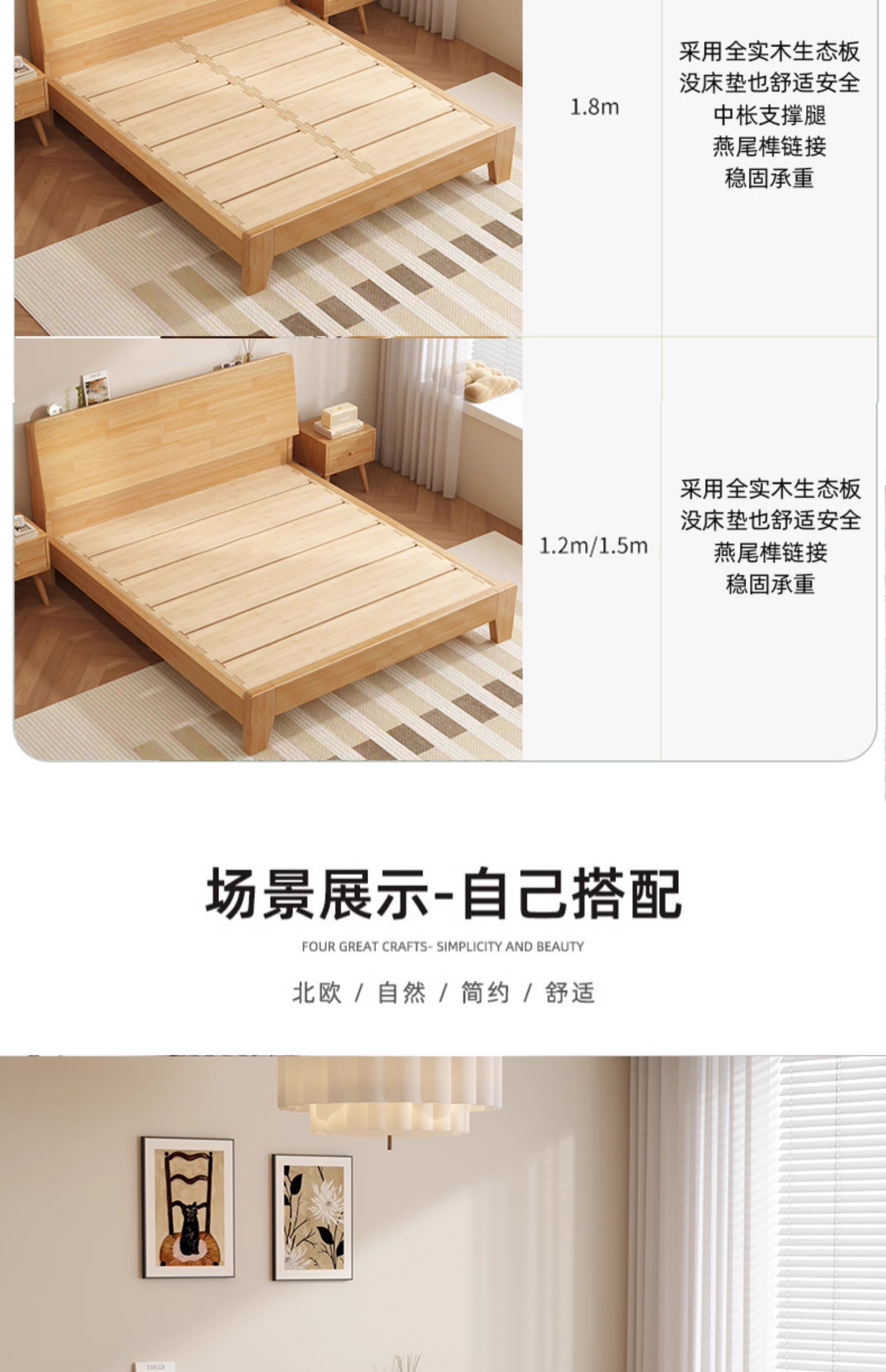 ✅ 모든 원목 침대, 모 루빙 구조, 1.8m 더블 침대, 마스터 침실, 1.5m 싱글 침대, 원목 임대 침대스토어 가기