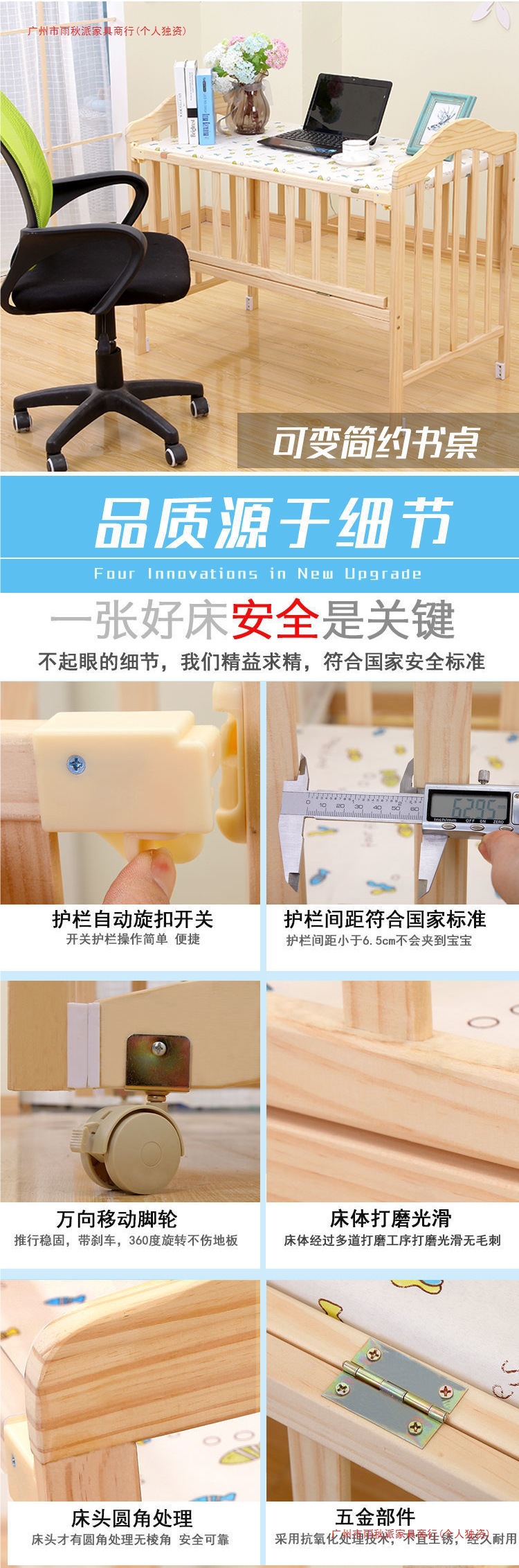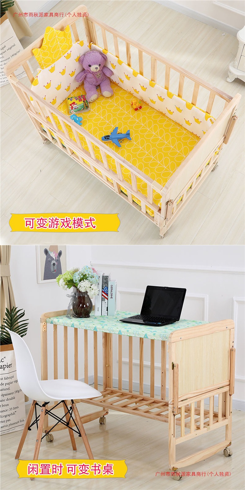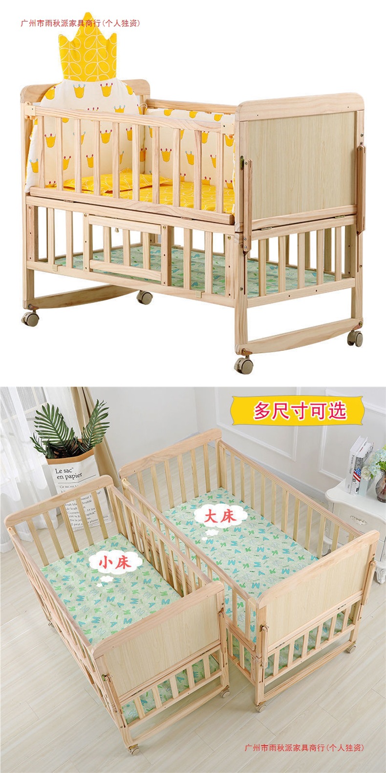 단단한 나무 유아용 침대 신생아 단단한 나무 페인트가없는 환경 친화적 인 아기 침대 요람 침대 이동식 책상 접합 대형 침대