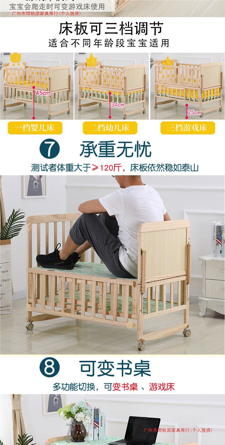 단단한 나무 유아용 침대 신생아 단단한 나무 페인트가없는 환경 친화적 인 아기 침대 요람 침대 이동식 책상 접합 대형 침대스토어 가기