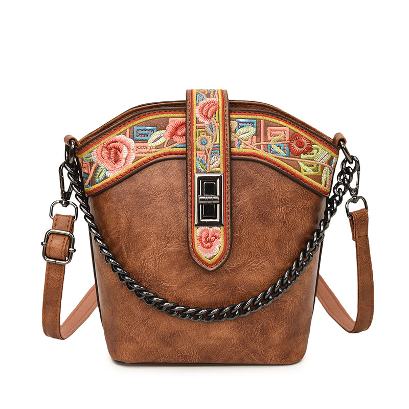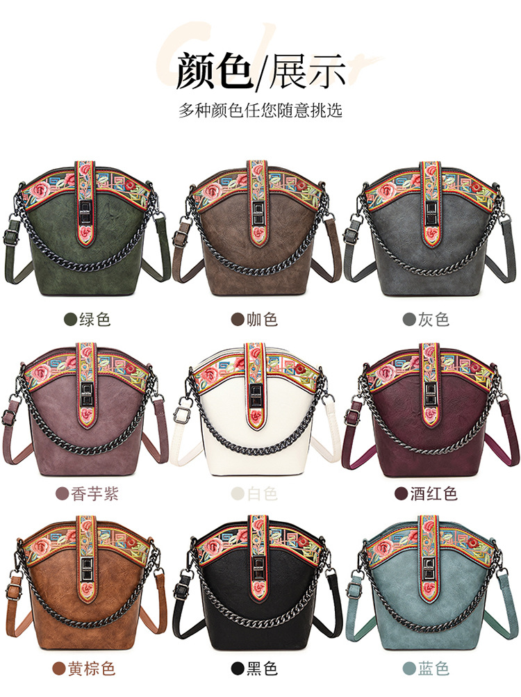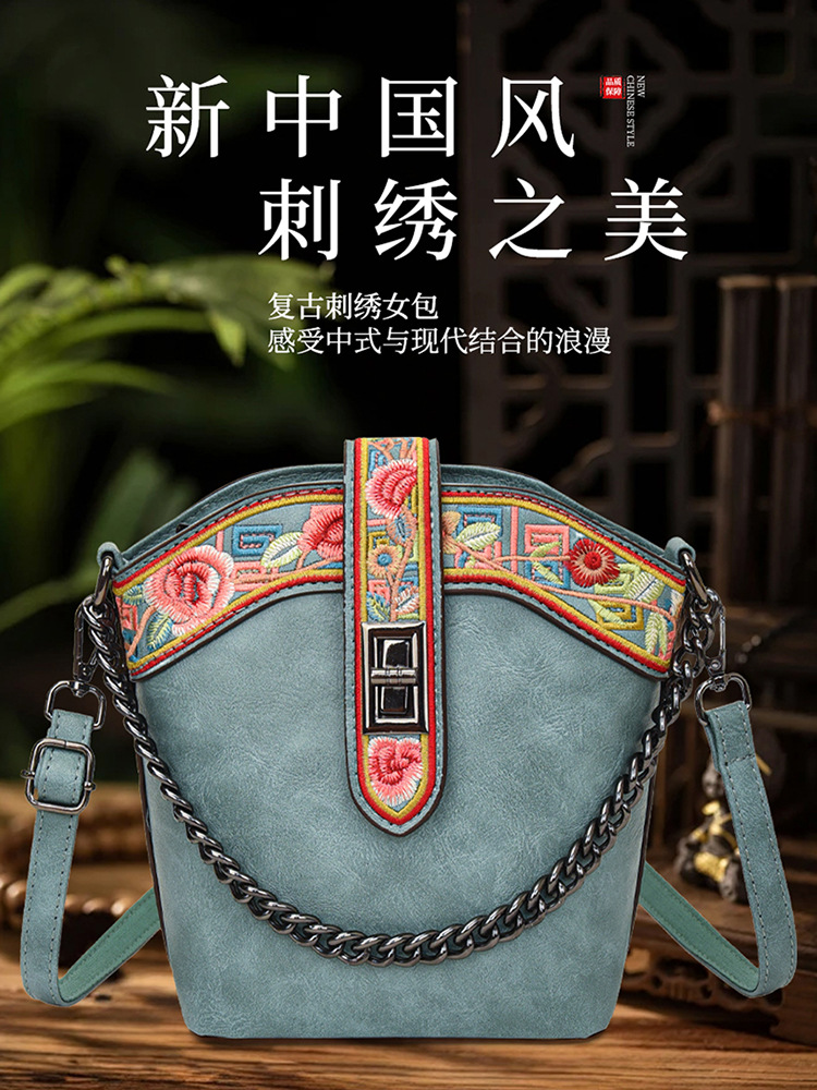 숄더백 복고풍 중국 스타일 자수 부드러운 가죽 캐주얼 크로스 바디 백 에스닉 스타일 캐주얼 통근 질감 가방 여성용