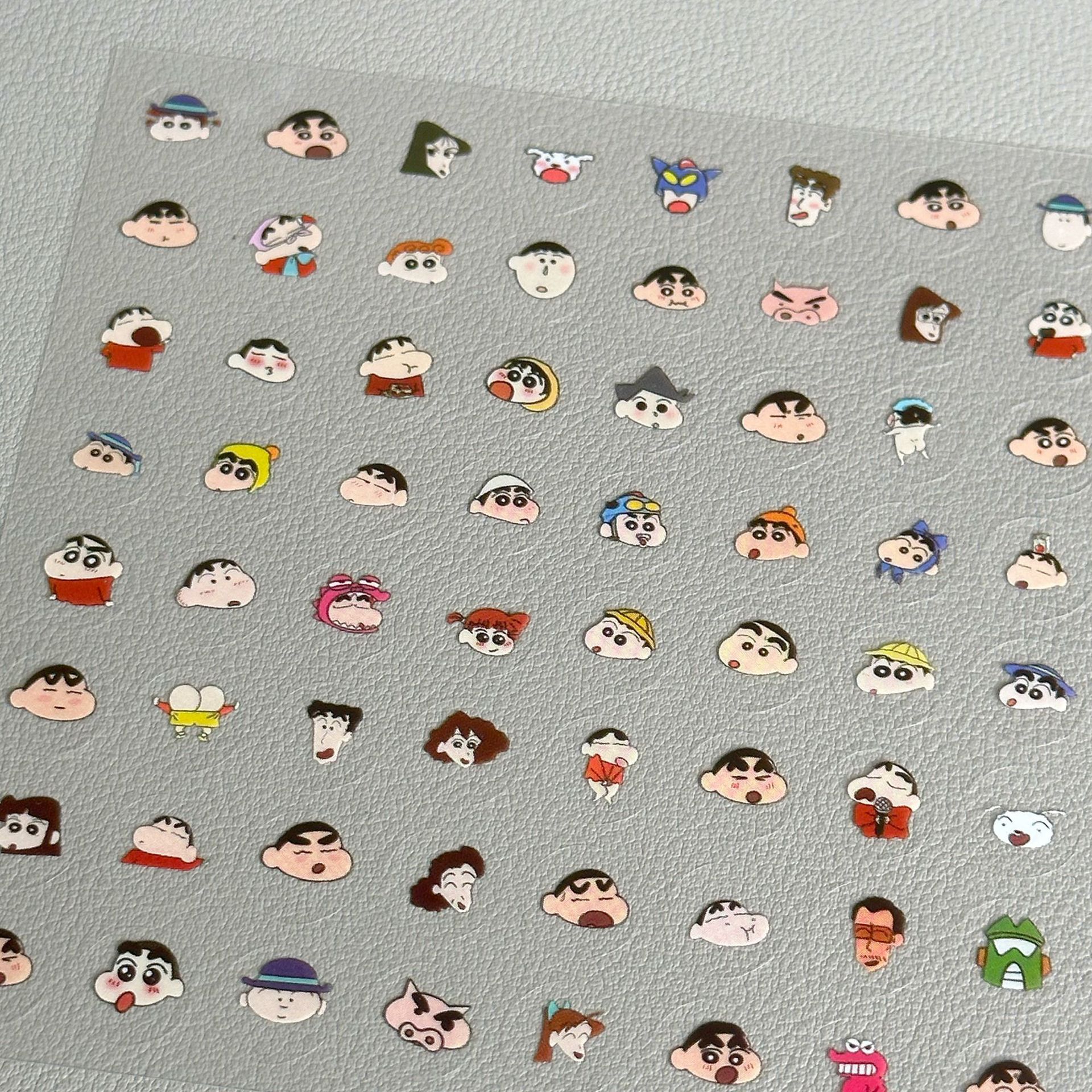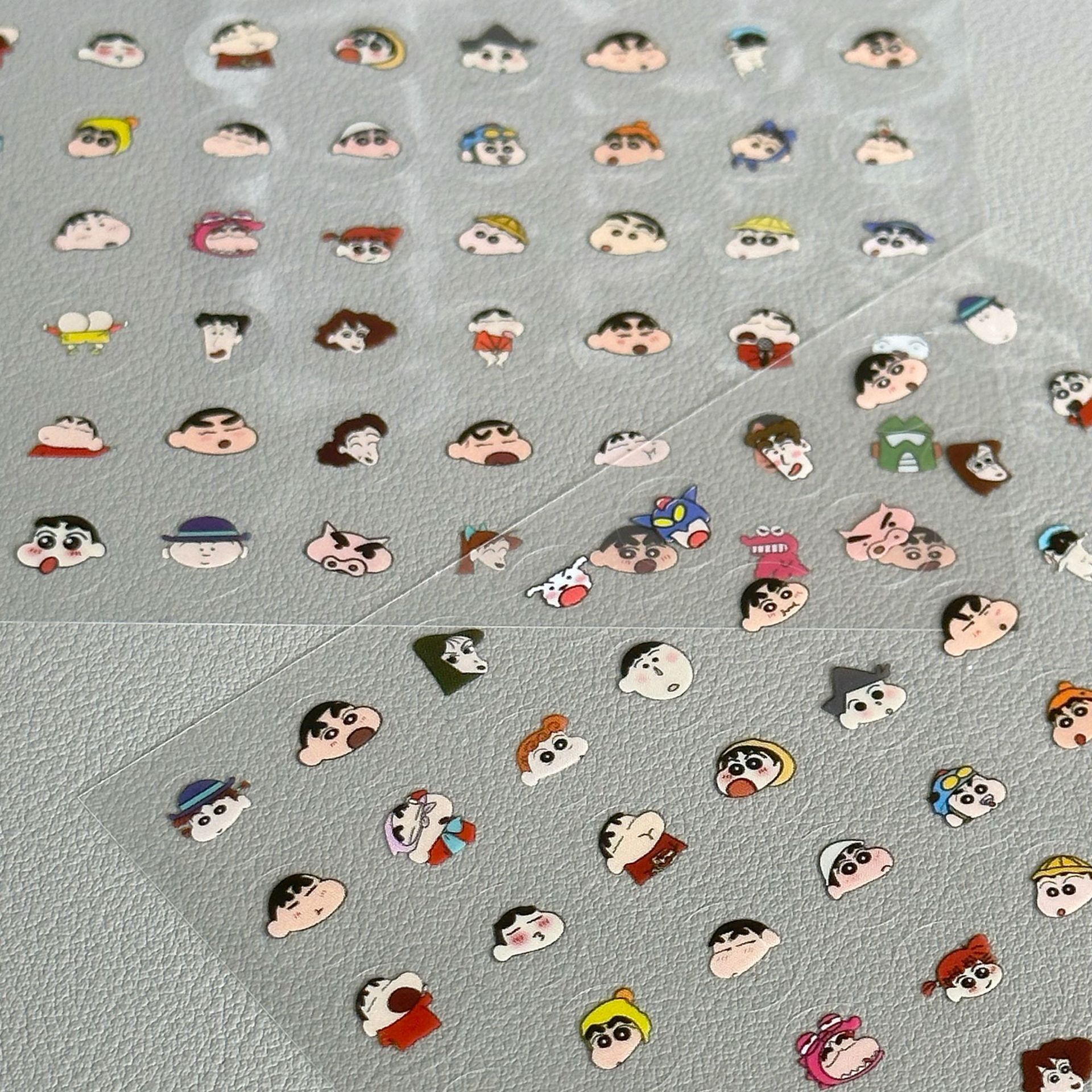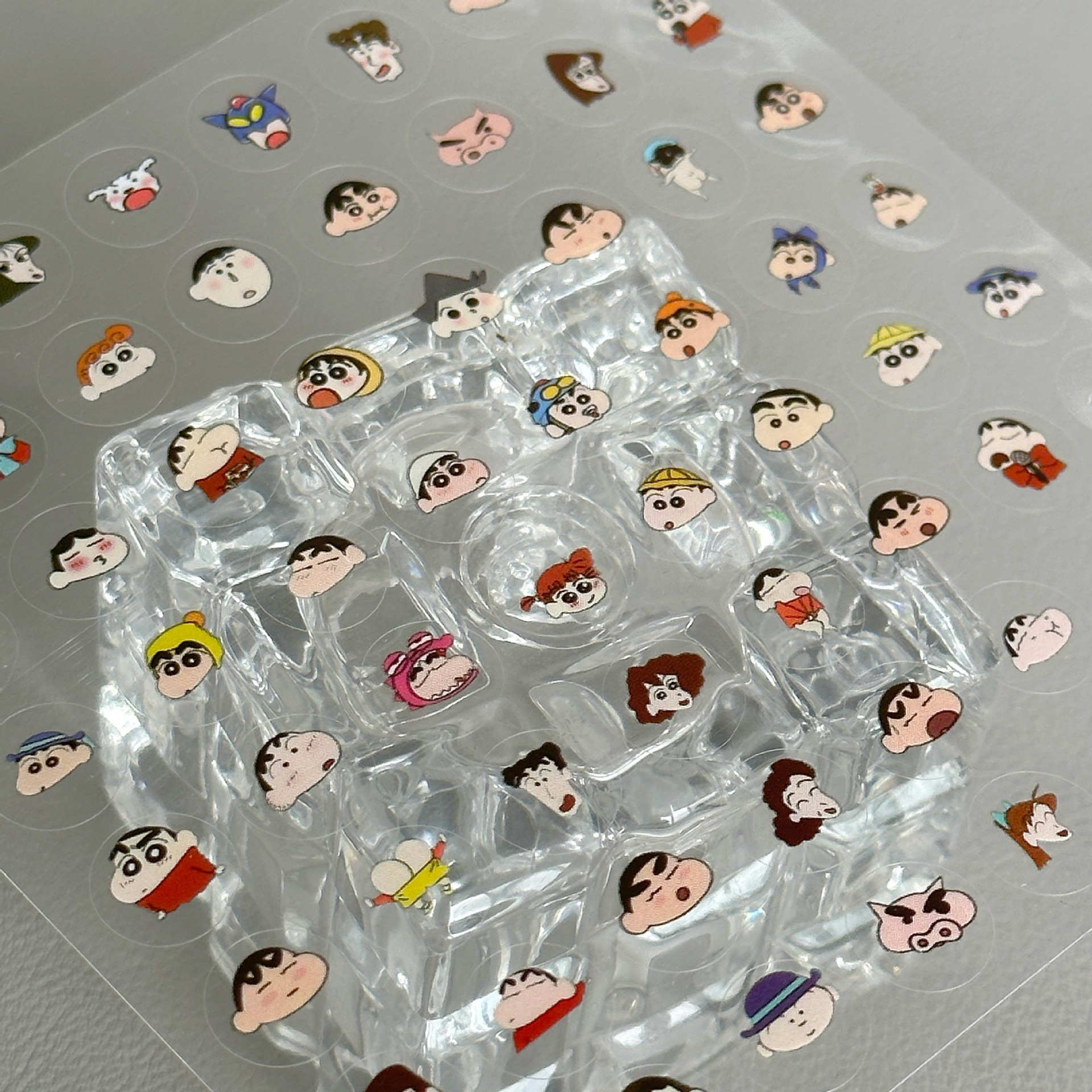 크레용 신짱 투명 고가치 패션 학생 어린이 투명 방수 PVC 핸드북 장식 만화 네일 스티커