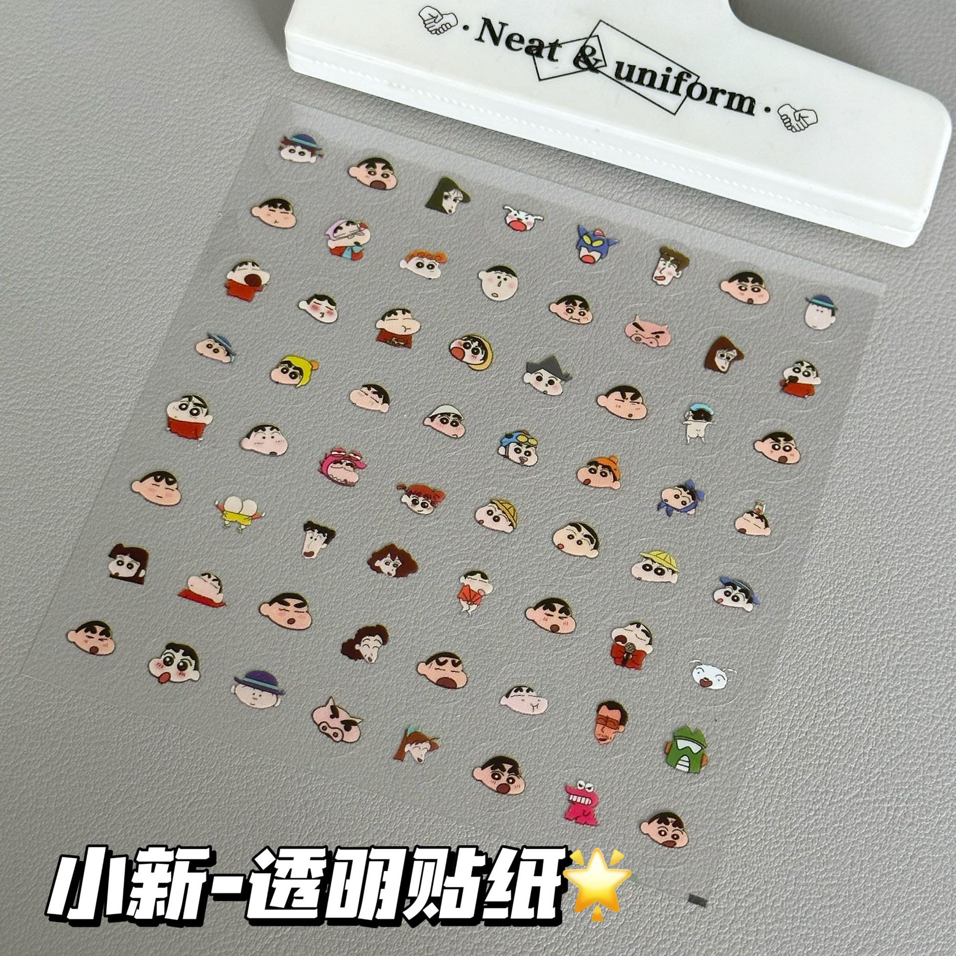크레용 신짱 투명 고가치 패션 학생 어린이 투명 방수 PVC 핸드북 장식 만화 네일 스티커스토어 가기