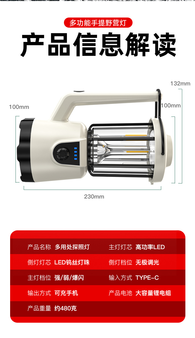 야외 다목적 휴대용 캠핑 램프, 방수 및 고휘도 조명, 실용적인 캠핑 램프, 고속 충전 조명