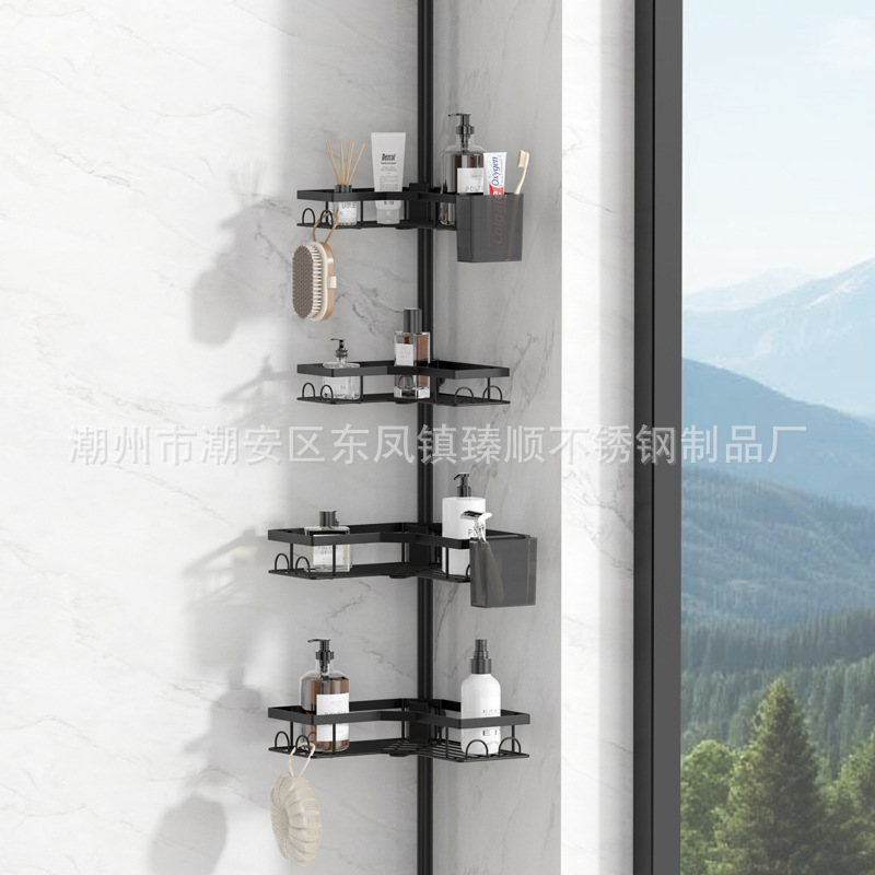 욕실 샤워실 화장실용 접이식 무타공 욕실 삼각 회전 코너 선반 수납