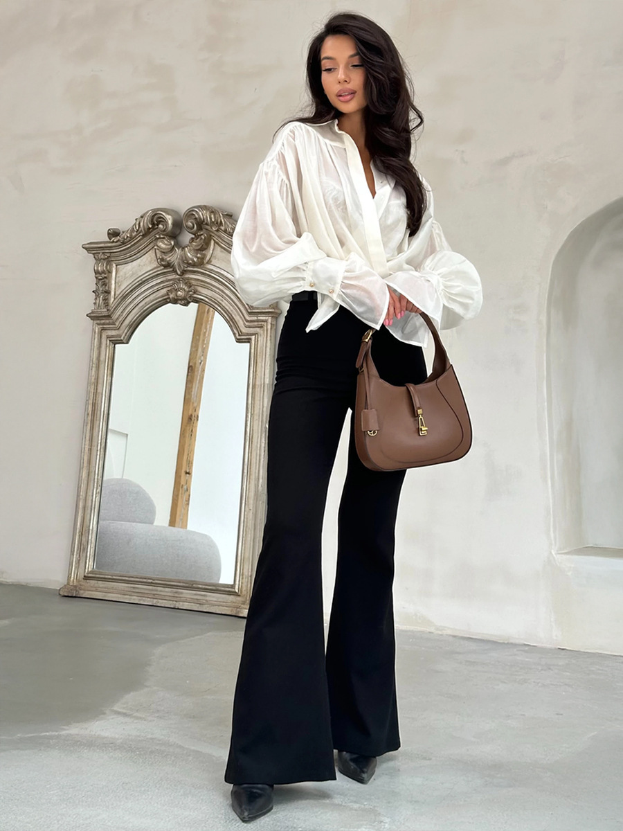 국경 간 프랑스 스타일 새틴 얇은 셔츠 유럽과 미국의 2025 새로운 고급 여성 랜턴 긴팔 캐주얼 탑