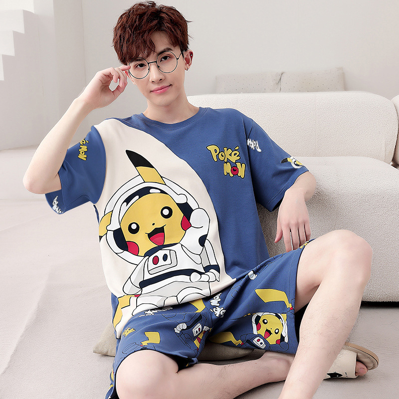 남성용 잠옷 반팔 얇은 여름 캐주얼 루즈 플러스 사이즈 여름 라운드 넥 심플 청소년 홈웨어 세트스토어 가기