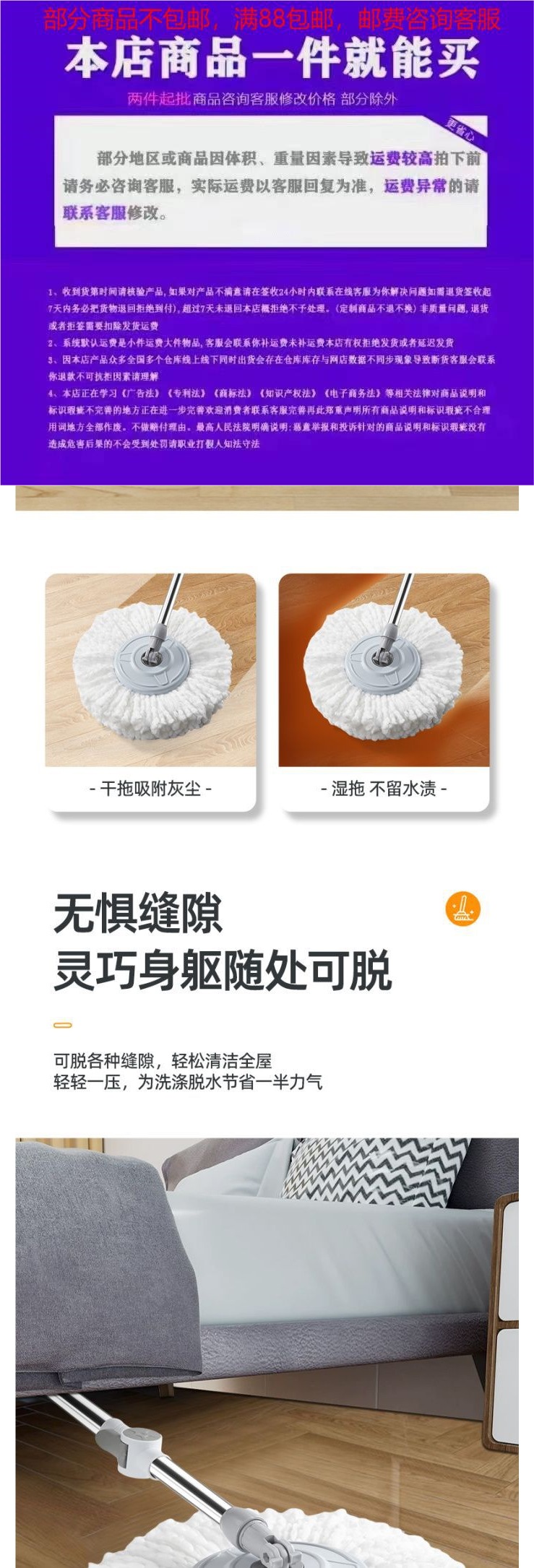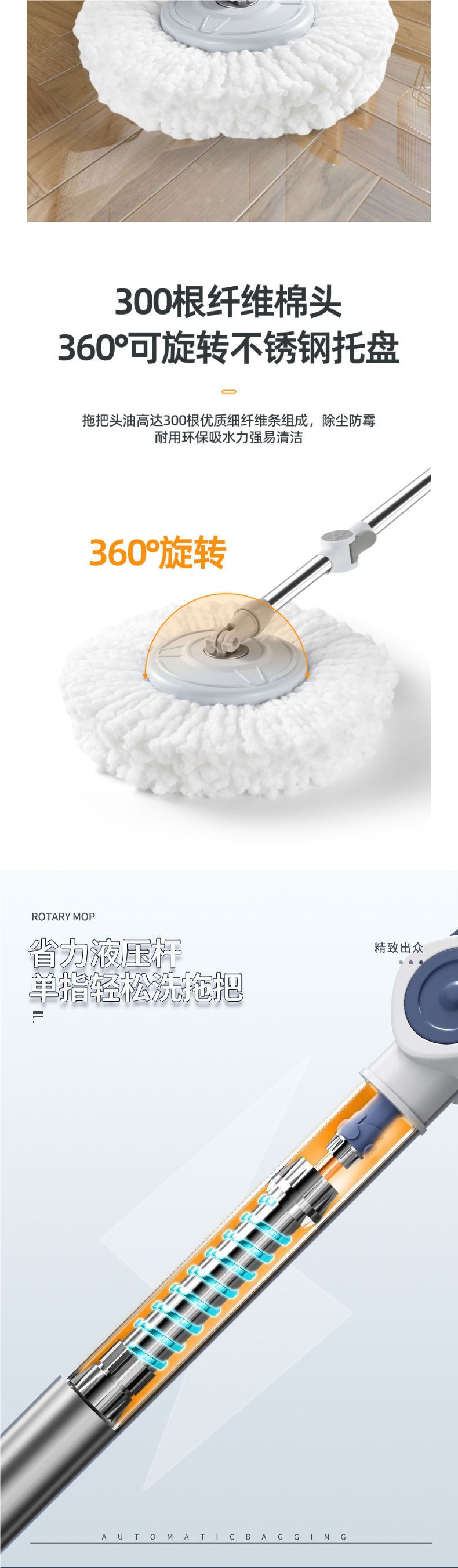 완전 자동 회전 핸즈프리 걸레 가정용 원걸레 청소 새로운 듀얼 드라이브 자동 건조 및 청소 Zhejiang스토어 가기