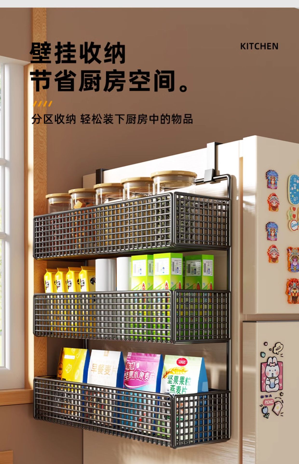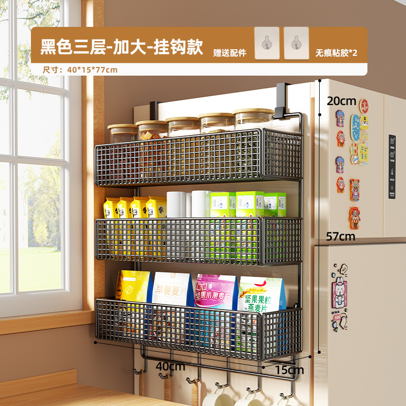 냉장고 펀치 프리 주방 후크 교수형 선반 보관함 측면 보관 바구니 다층 벽걸이 형 계층형 보관함