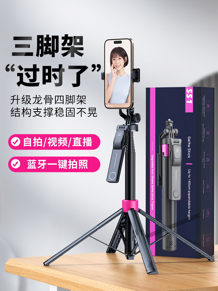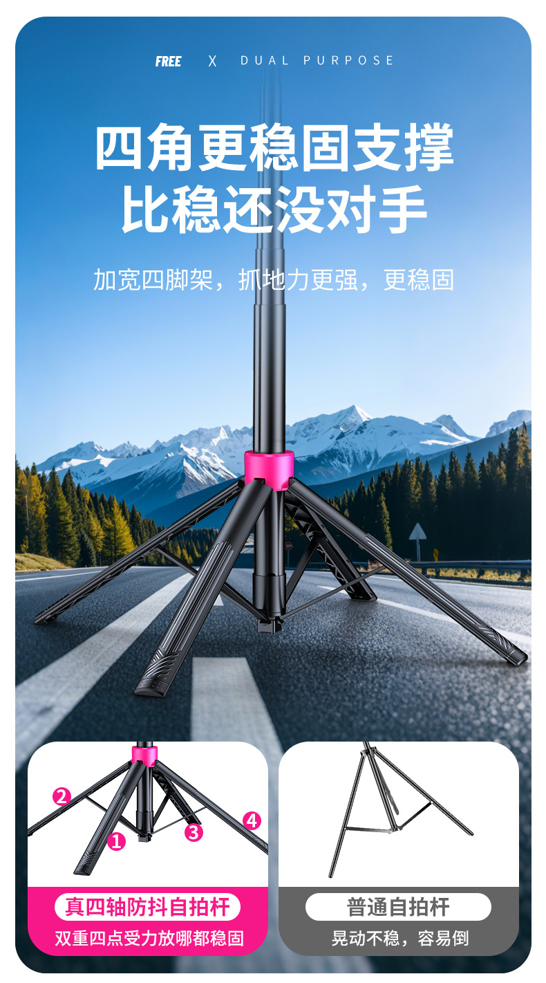2025 새로운 셀카봉 삼각대 4축 손떨림 방지 휴대폰 라이브 방송 스탠드 플로어 스탠딩 야외 휴대용 360도 촬영스토어 가기