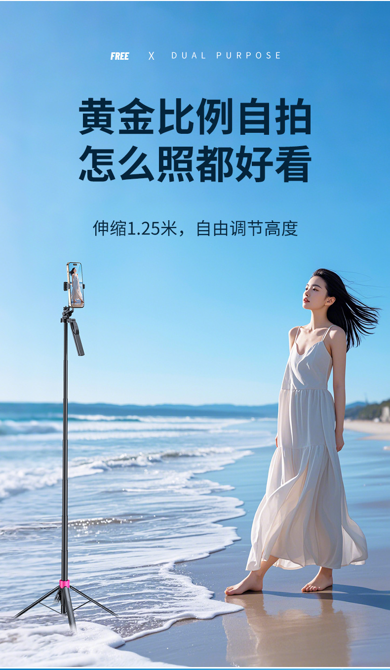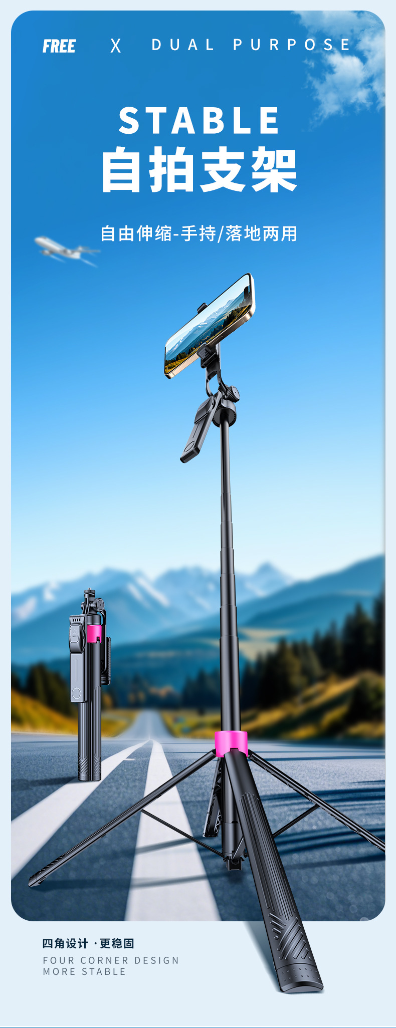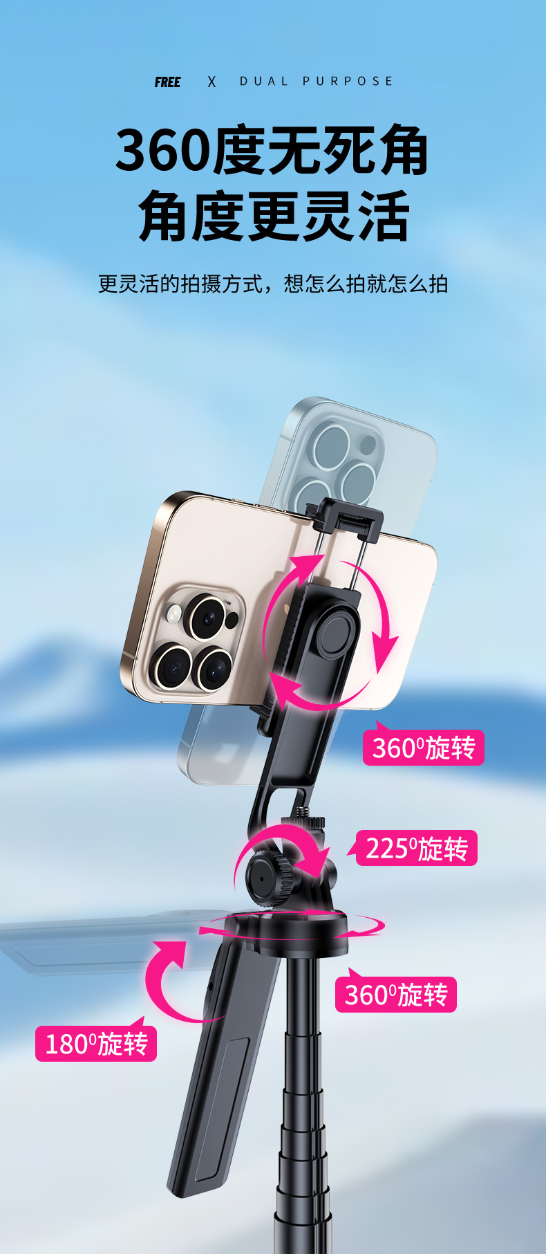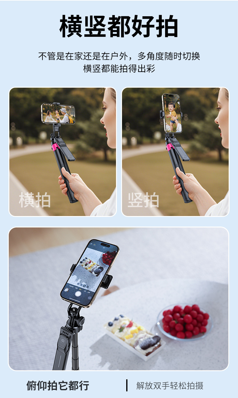 2025 새로운 셀카봉 삼각대 4축 손떨림 방지 휴대폰 라이브 방송 스탠드 플로어 스탠딩 야외 휴대용 360도 촬영
