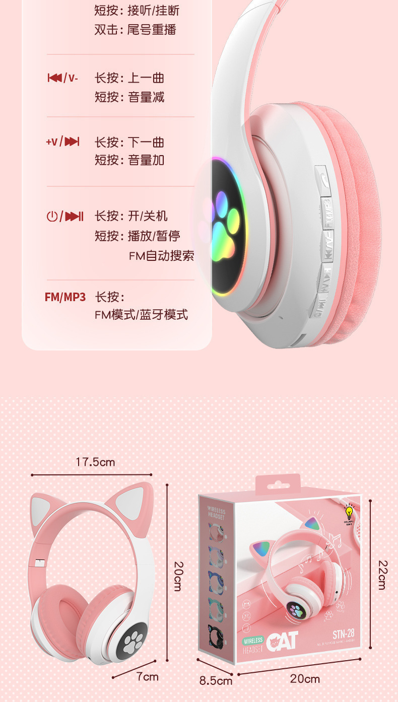 2025 새로운 블루투스 헤드셋 STN-28 빛나는 고양이 귀 고가치 헤드 장착형 무선 헤드셋 게임 고품질