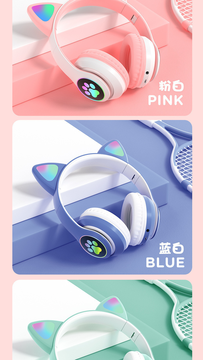 2025 새로운 블루투스 헤드셋 STN-28 빛나는 고양이 귀 고가치 헤드 장착형 무선 헤드셋 게임 고품질스토어 가기