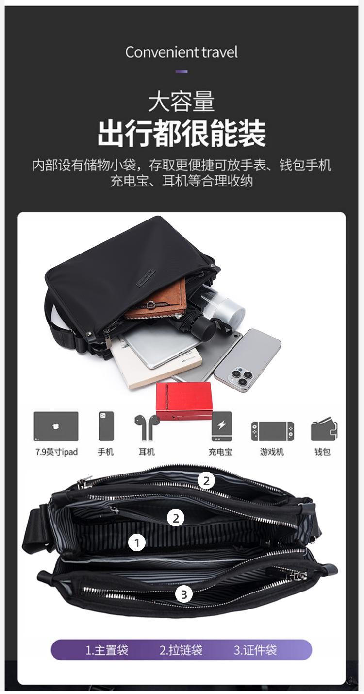 비즈니스 가방 남성용 새로운 스타일 캐주얼 단순 다용도 경량 옥스포드 천 다층 남성용 여행 통근 숄더 크로스 바디 백