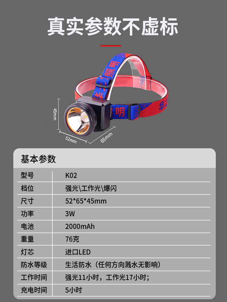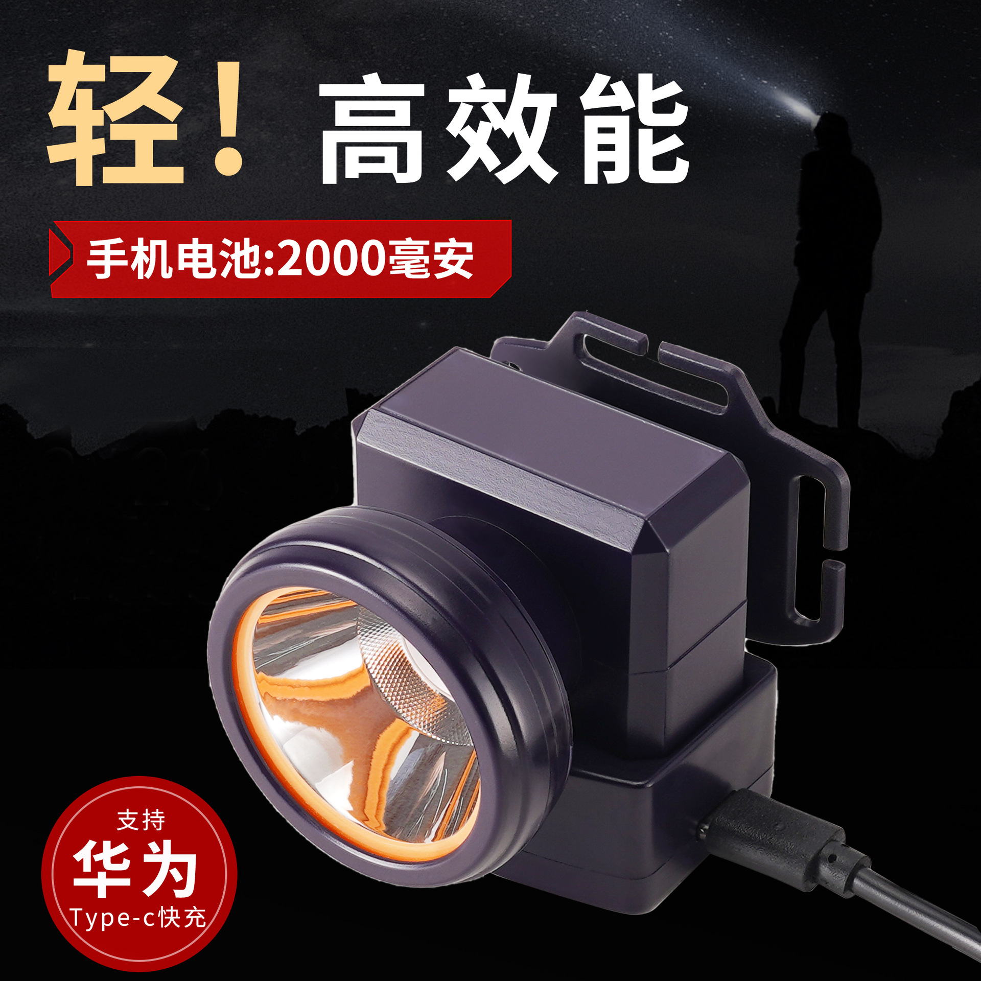 Jinlaodao 대형 헤드라이트, 고휘도, 긴 배터리 수명, 방수 휴대폰 충전식 헤드 장착형 작업장 광산 램프, 실외