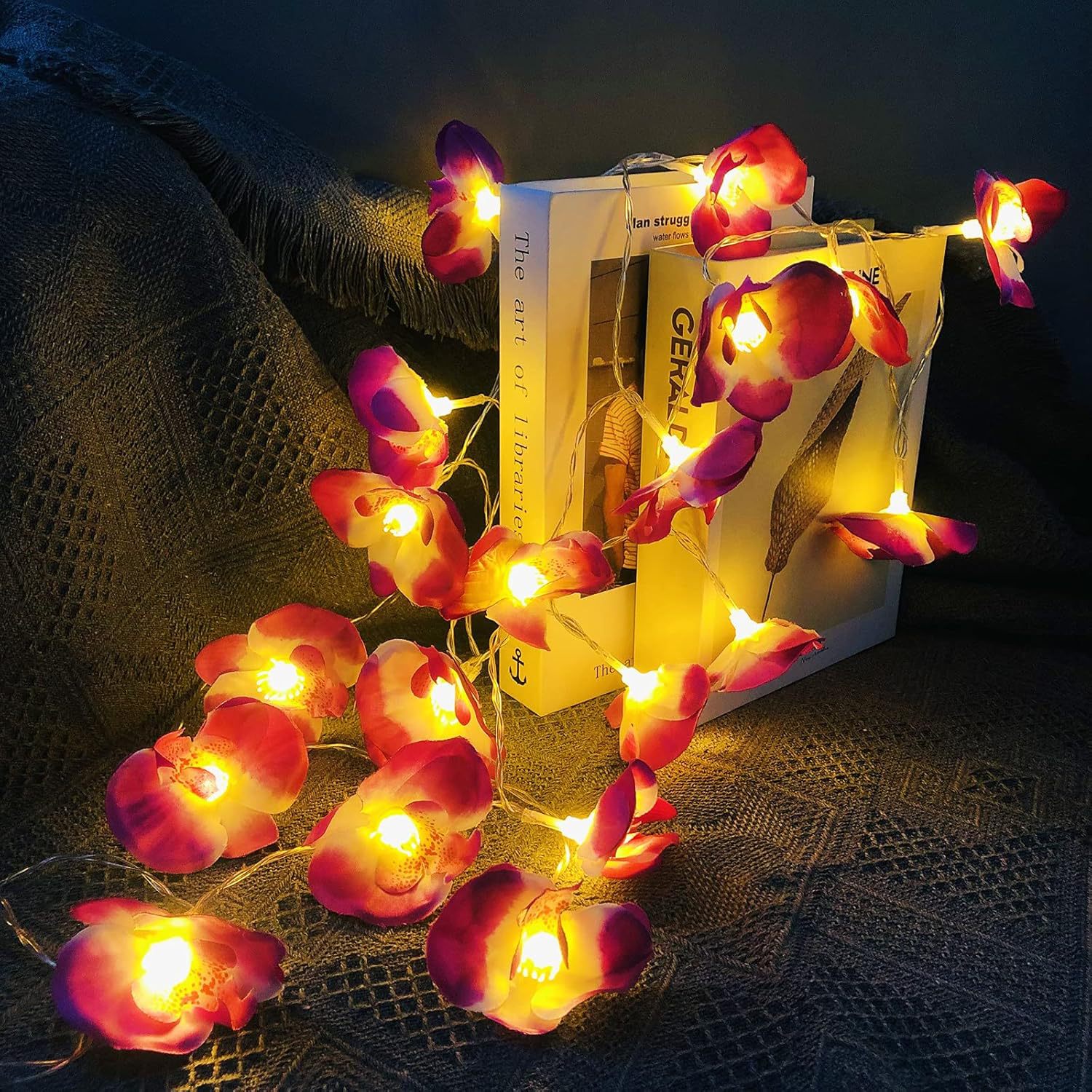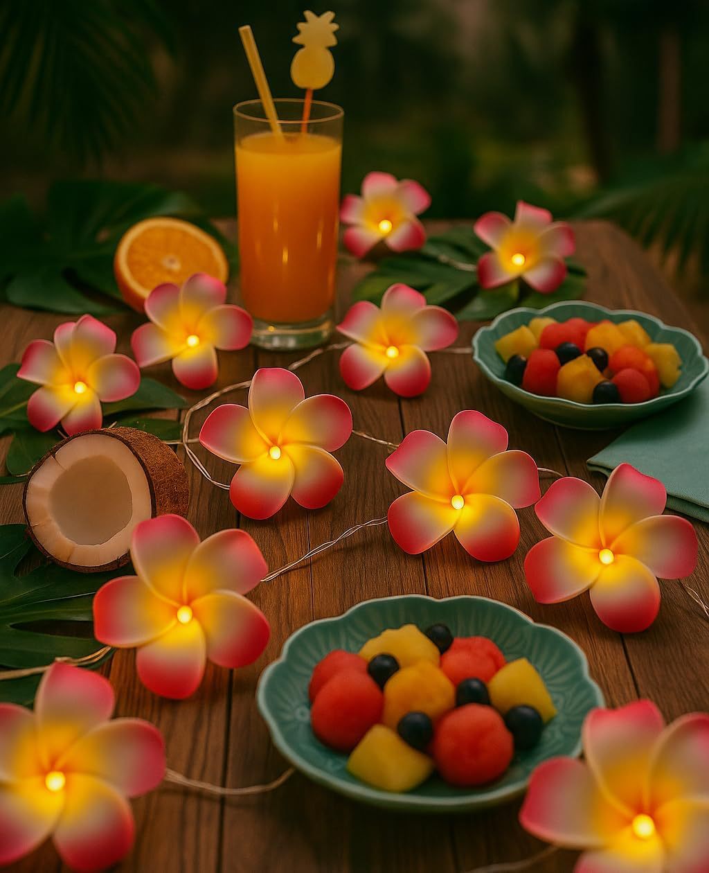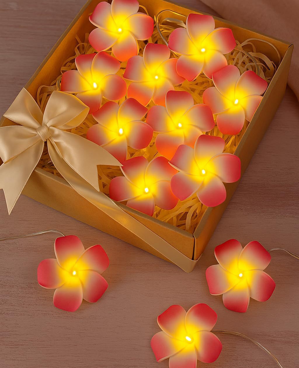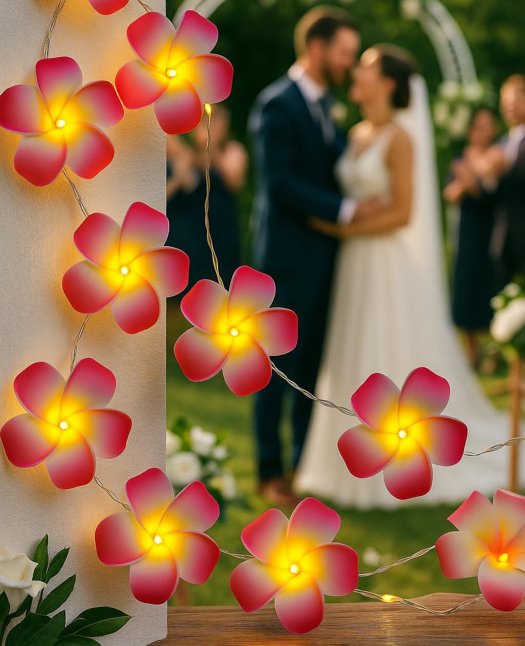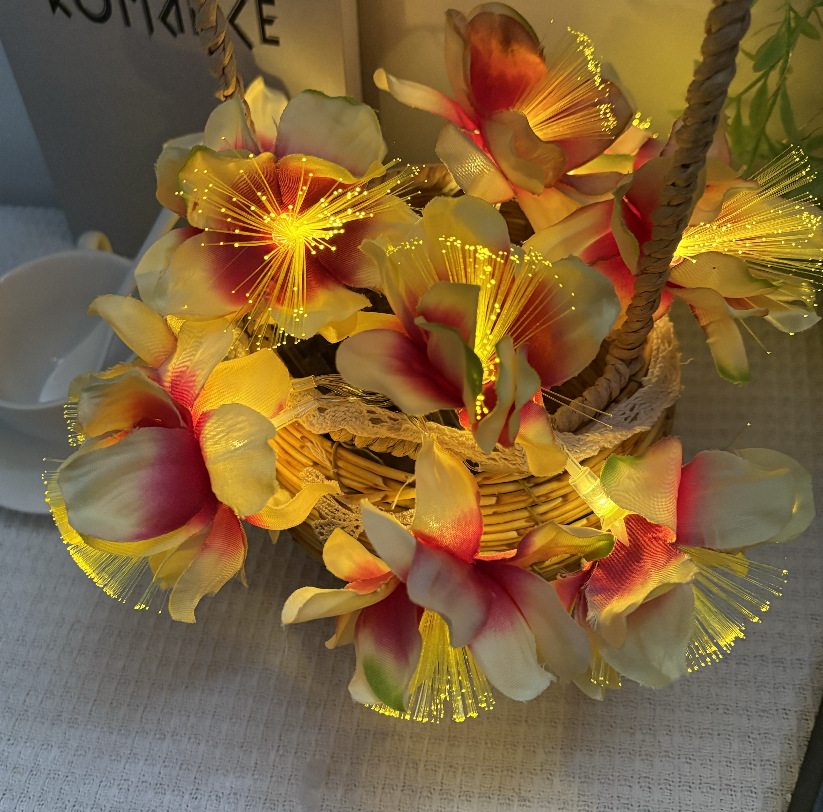 LED 광섬유 꽃등 스트링, 밤향기나는 플루메리아 인공꽃, 축제, 결혼식 장식, 분위기 조성, 발광 조명