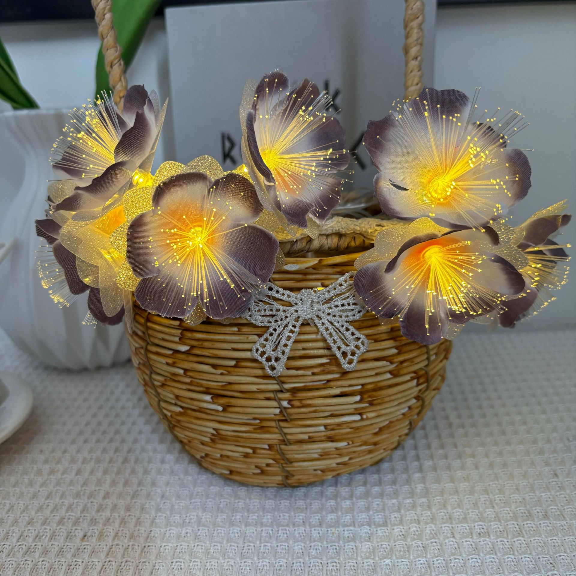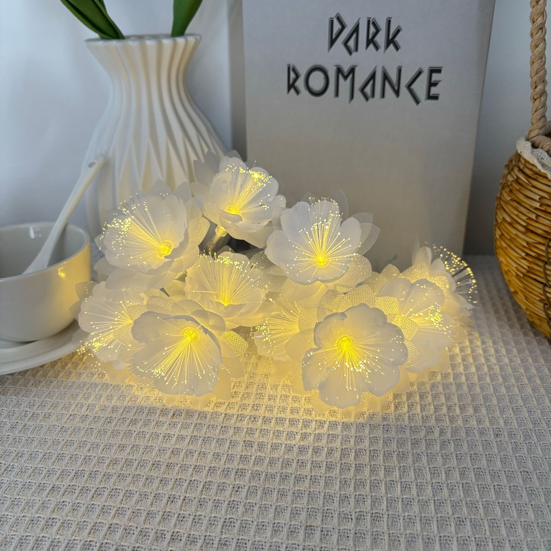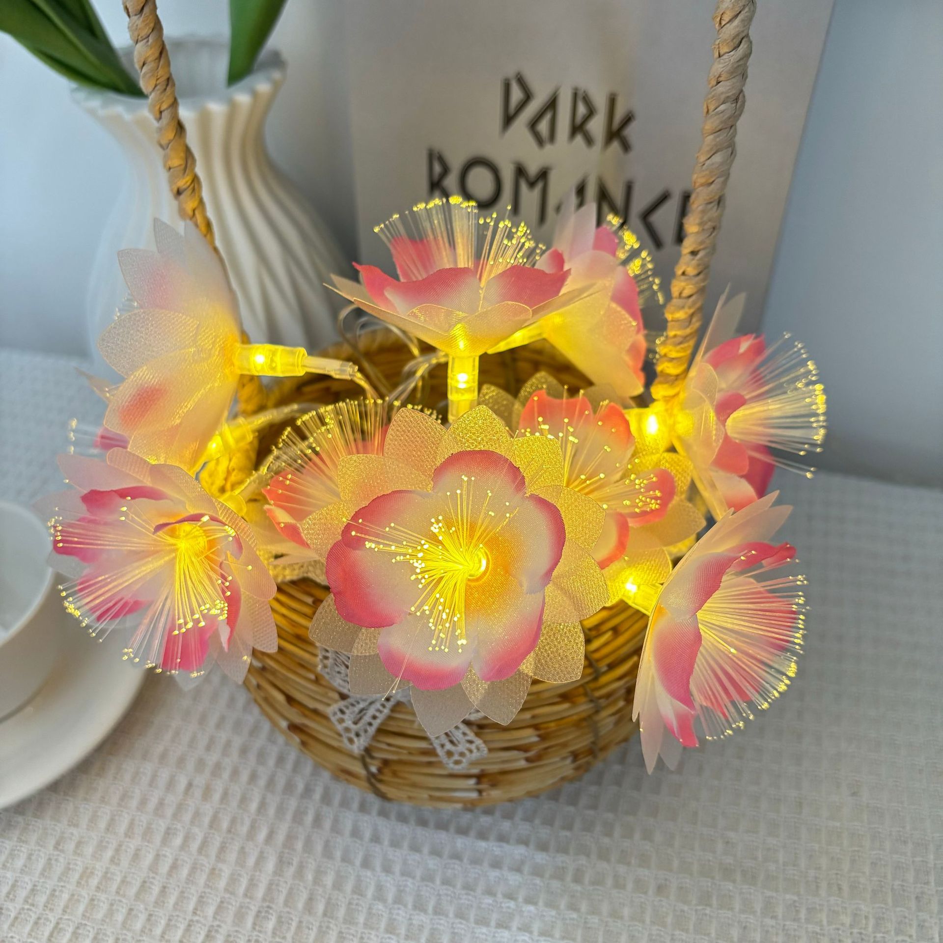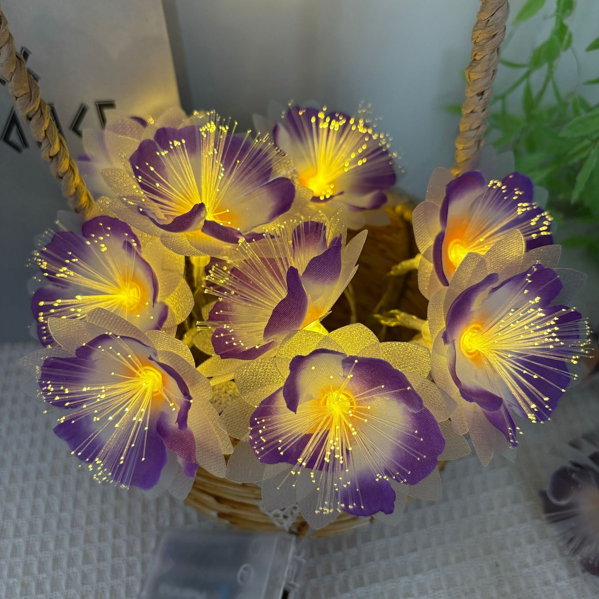 LED 광섬유 꽃등 스트링, 밤향기나는 플루메리아 인공꽃, 축제, 결혼식 장식, 분위기 조성, 발광 조명스토어 가기