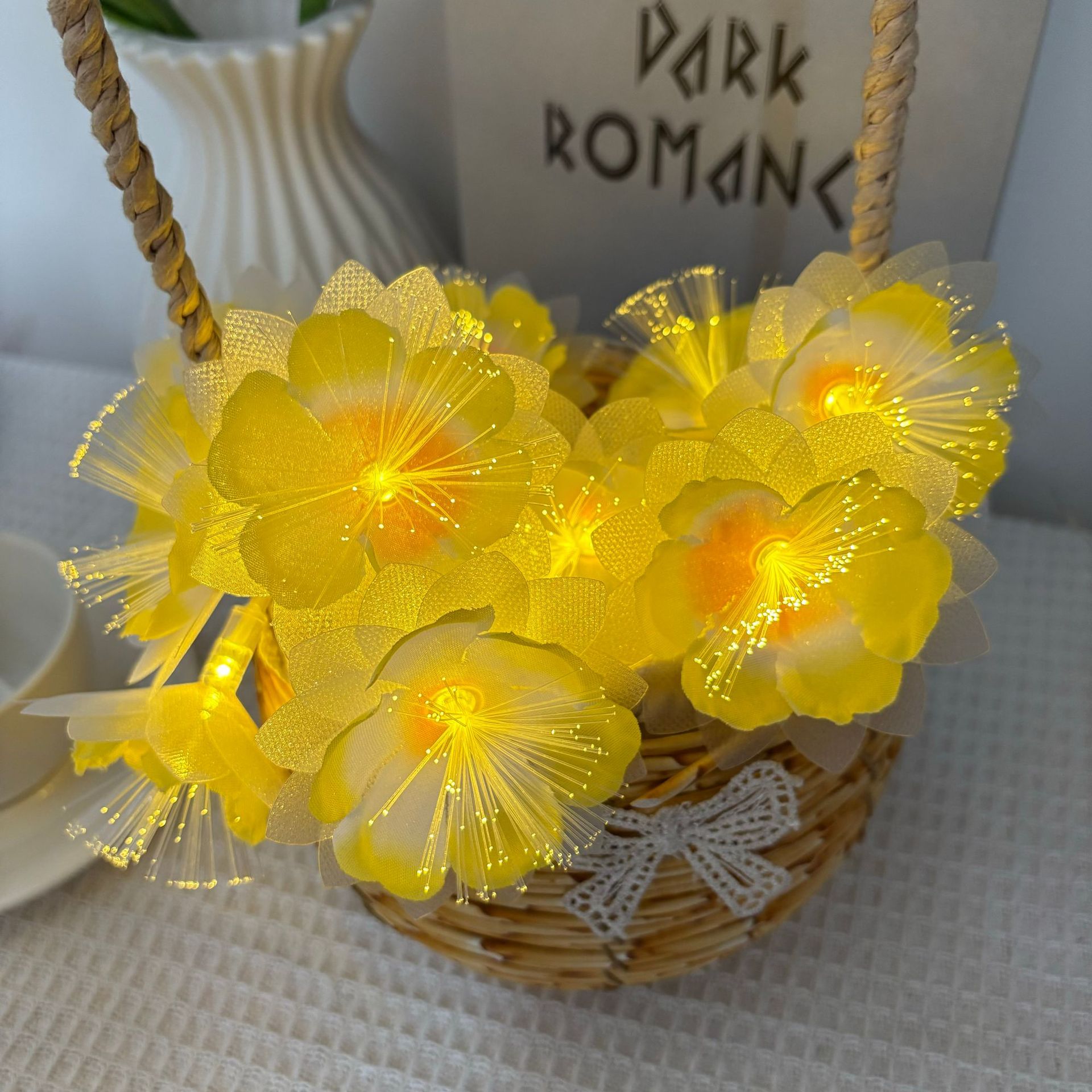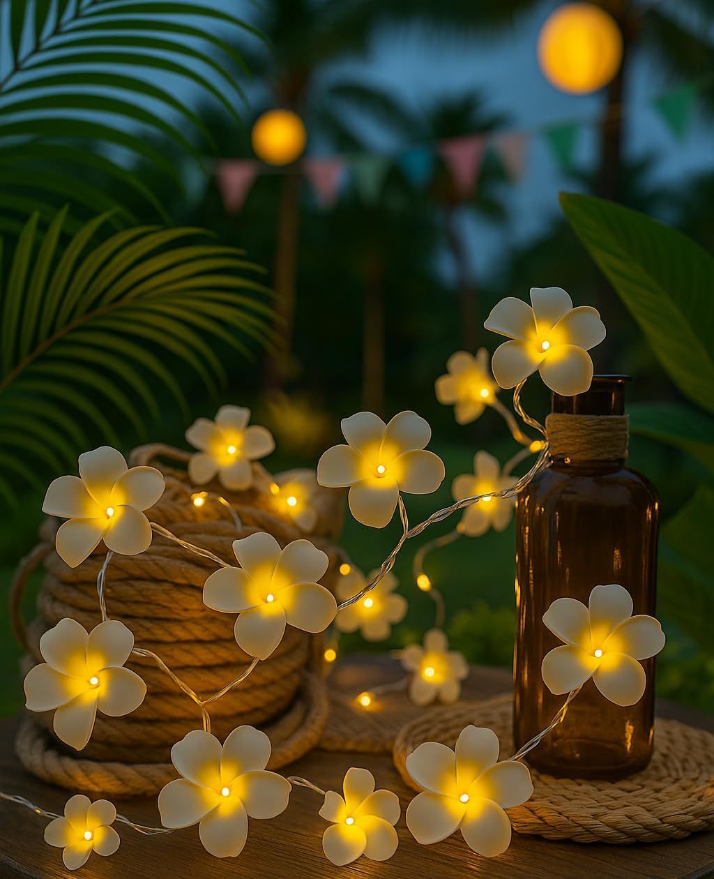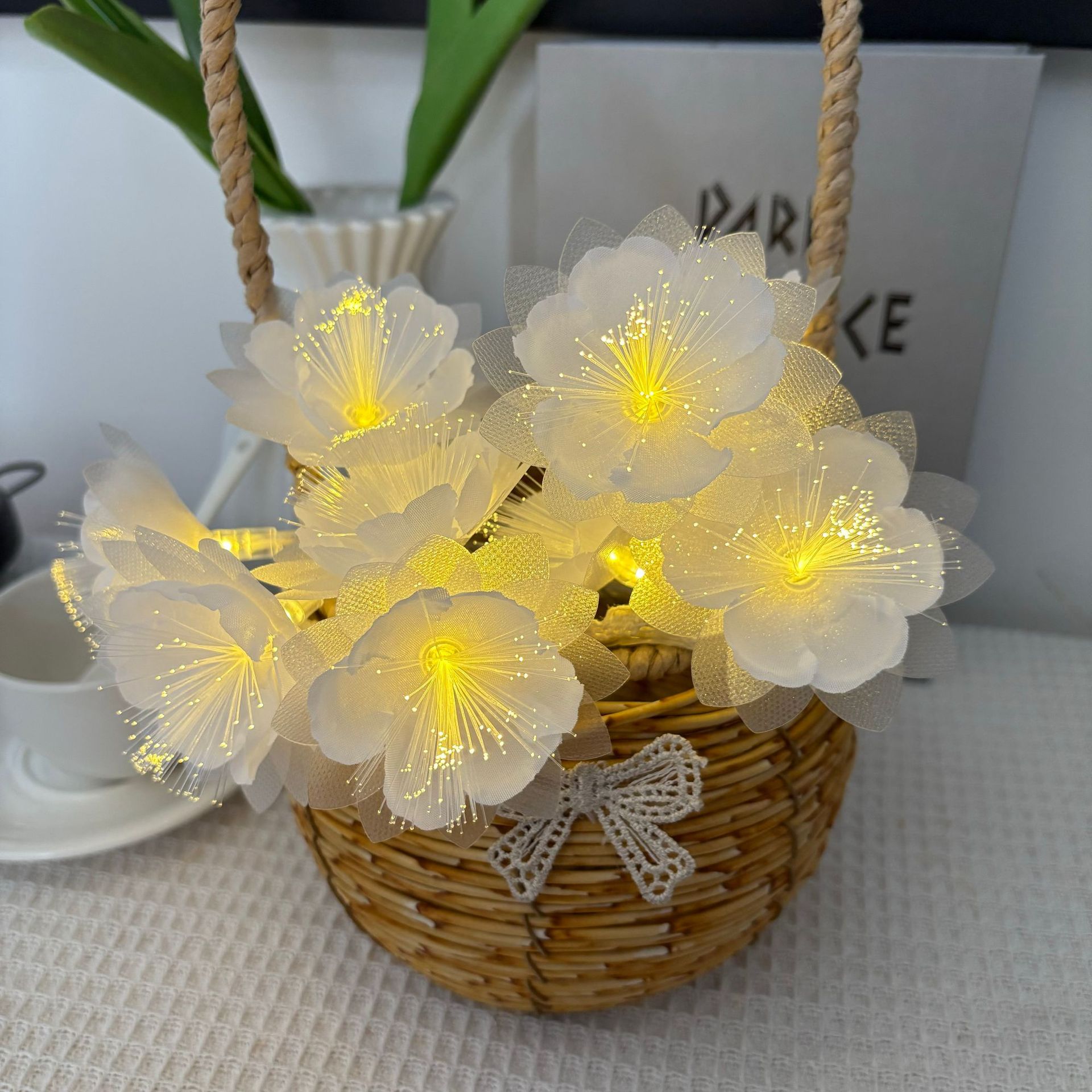 LED 광섬유 꽃등 스트링, 밤향기나는 플루메리아 인공꽃, 축제, 결혼식 장식, 분위기 조성, 발광 조명스토어 가기