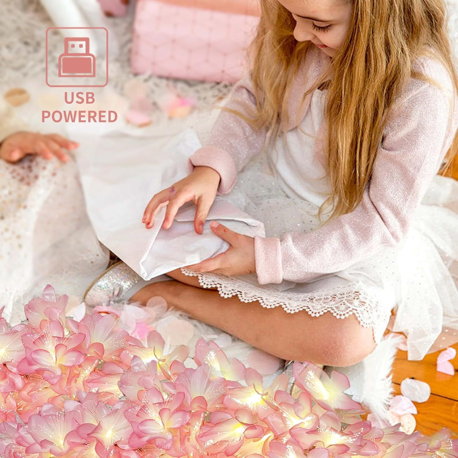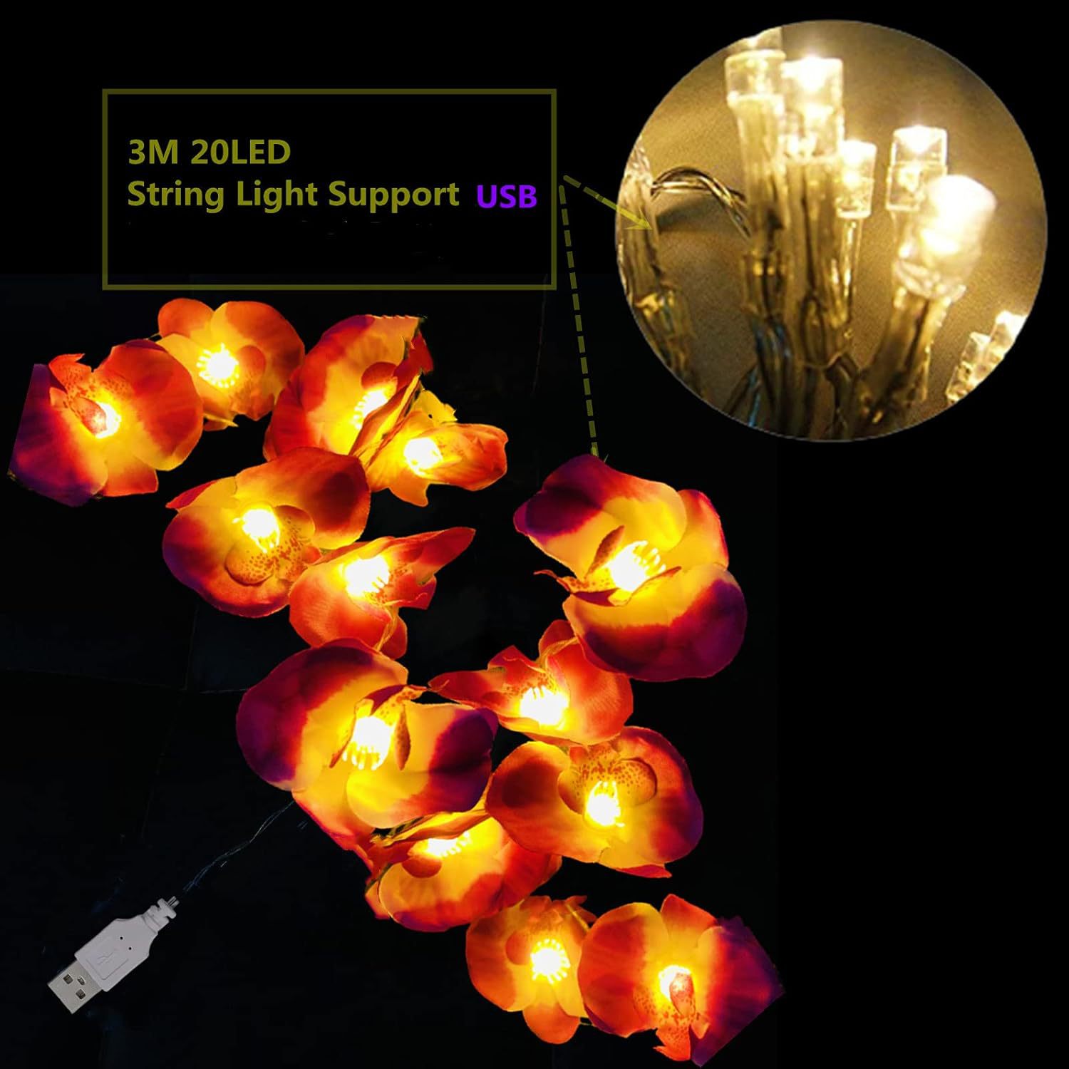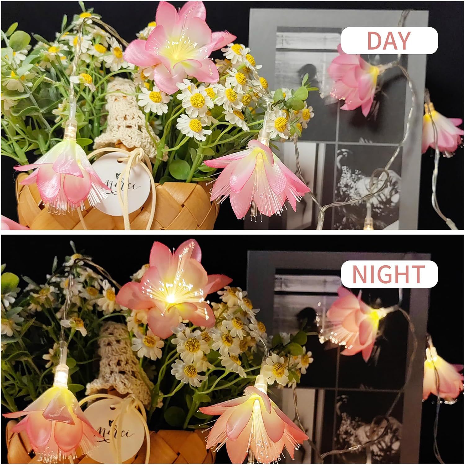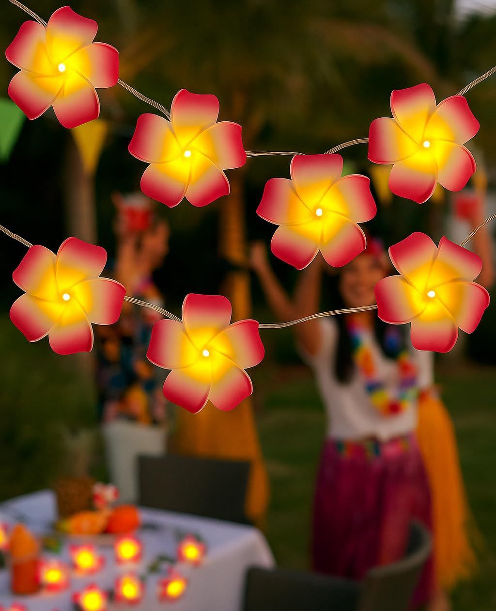 LED 광섬유 꽃등 스트링, 밤향기나는 플루메리아 인공꽃, 축제, 결혼식 장식, 분위기 조성, 발광 조명스토어 가기