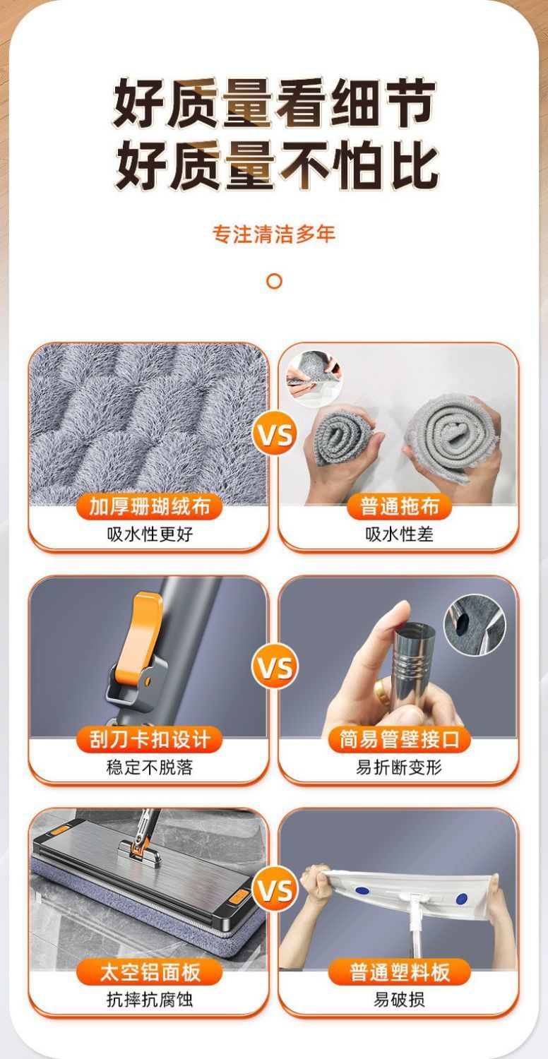 Oladuo 알루미늄 합금 플랫 걸레 가정용 습식 및 건식 사용 핸즈프리 레이지 원 스윕 클린 인터넷 연예인 걸레스토어 가기