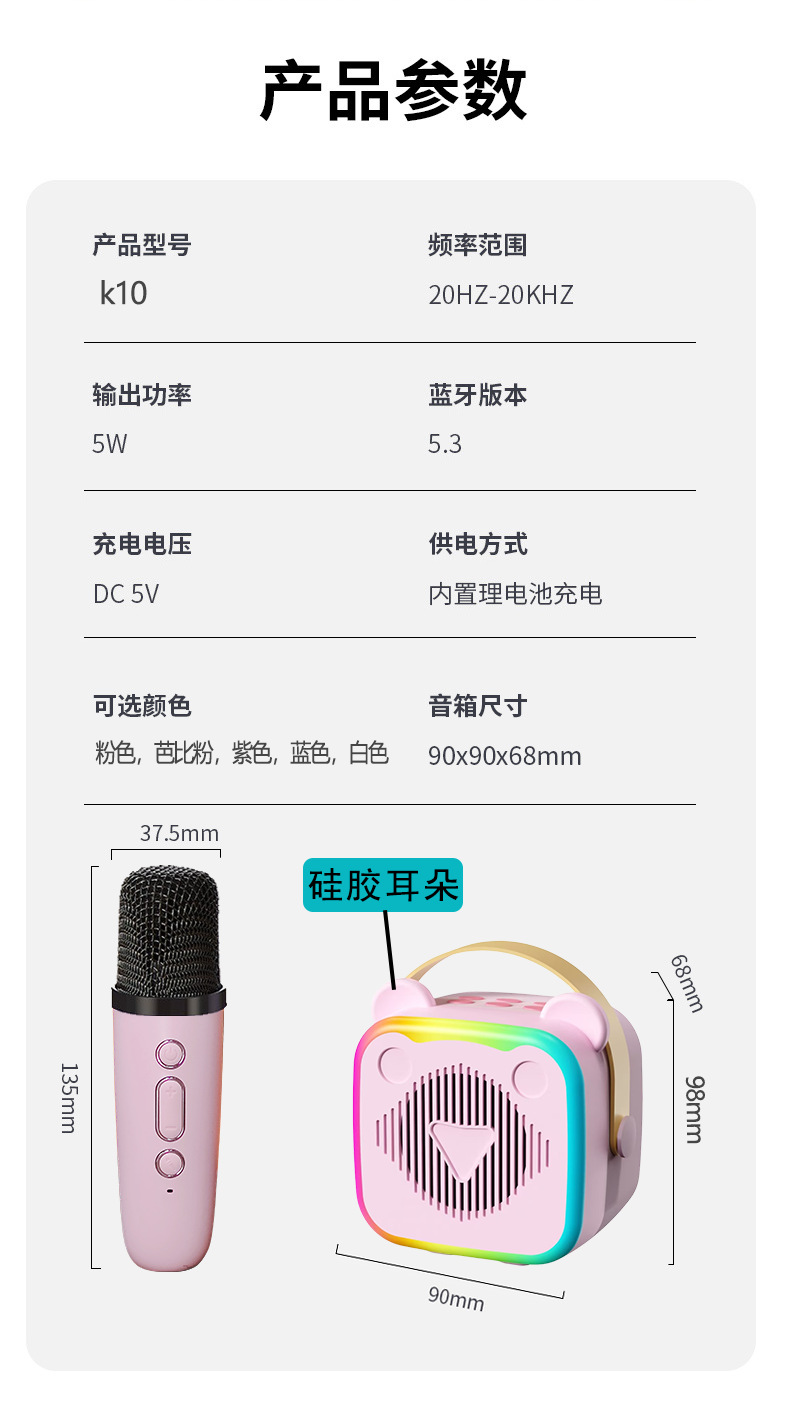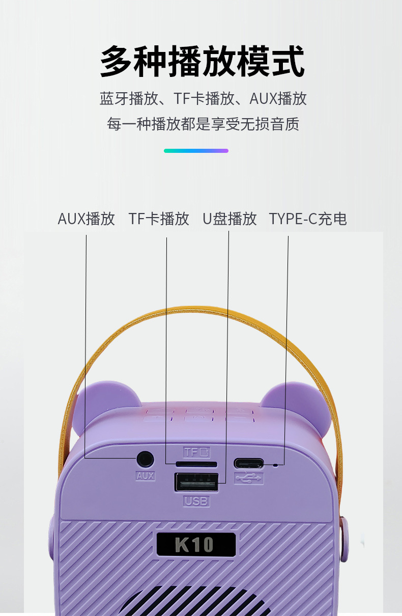 K 노래 블루투스 K10 스피커 마이크 노래 오디오 통합 마이크 생일 선물 소녀 어린이 날 K12