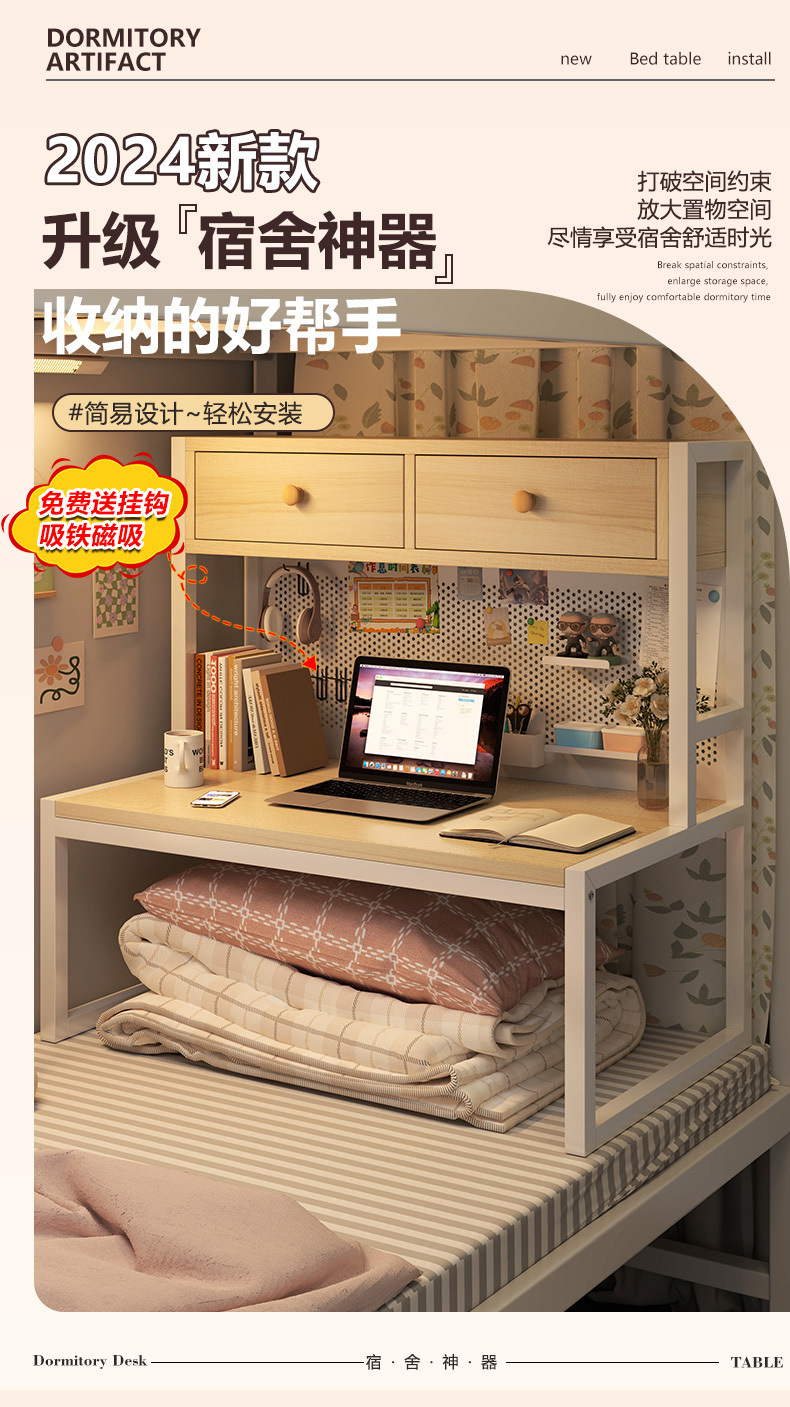 대학생 기숙사 유물, 철제 프레임 테이블, 베드룸 컴퓨터 테이블, 책상 수납 선반, 침대 상단 노트북