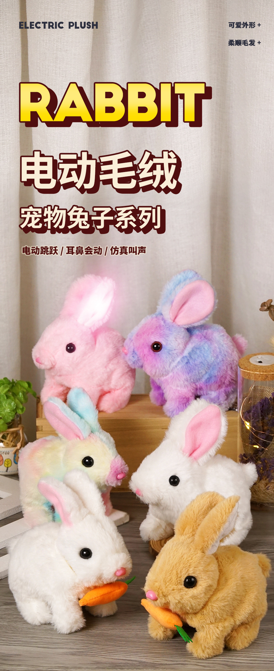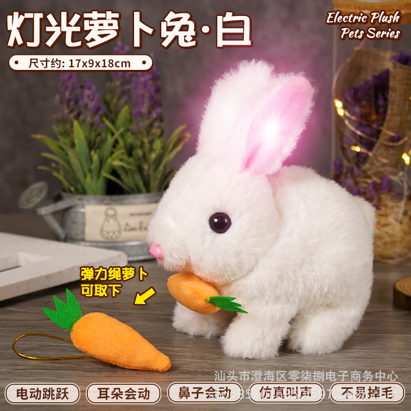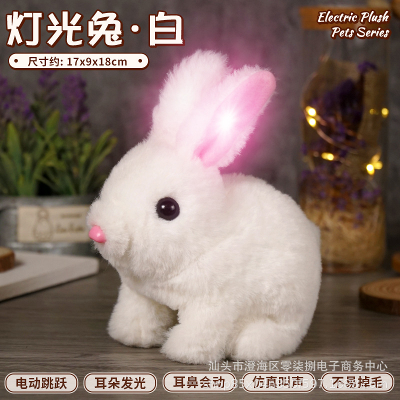 【영수증 발행 가능】전동 토끼 인형, 컬러풀한 흰 토끼, 움직이고 소리내고 귀를 흔드는 시뮬레이션 애완동물 장난감스토어 가기