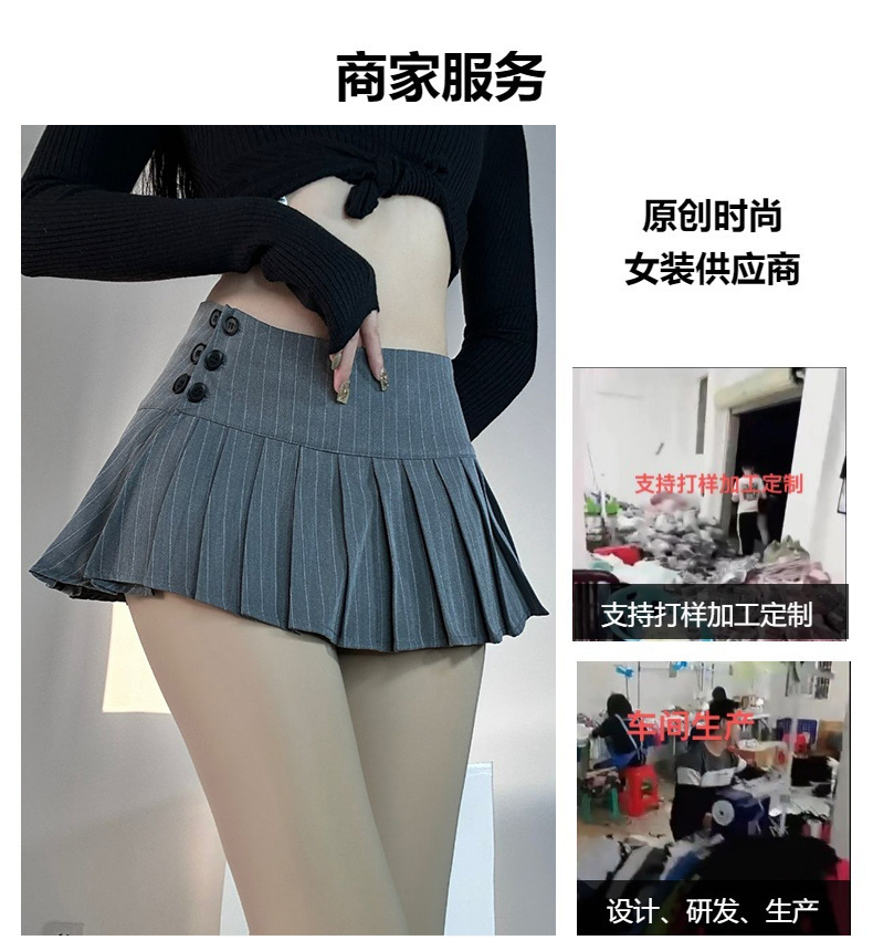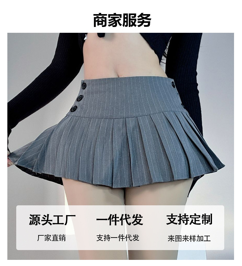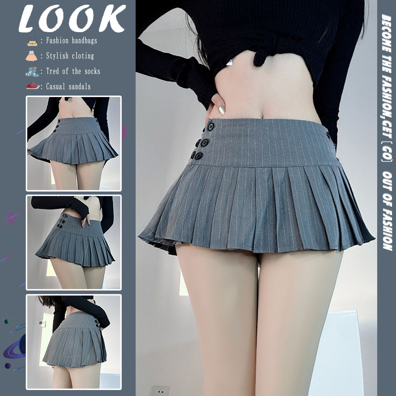 여름 미국 복고풍 줄무늬 회색 정장 원단 로우 웨이스트 여성 다목적 섹시한 핫 소녀 로우 웨이스트 플리츠 미니 스커트스토어 가기