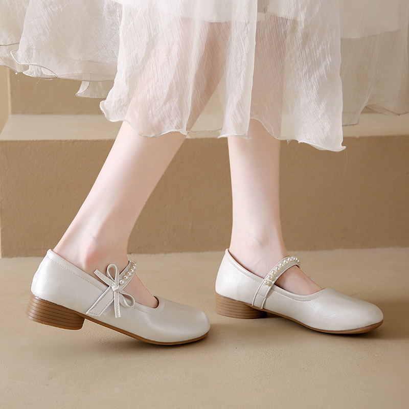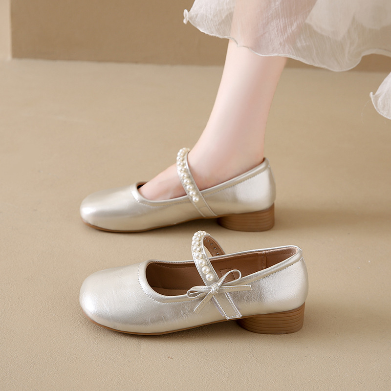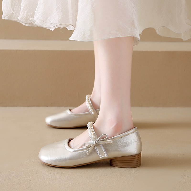 여성을위한 레트로 실버 프렌치 라운드 발가락 펌프 두꺼운 굽 신발 여름 2025 새로운 스타일 스커트 다목적 메리 제인 여성 신발