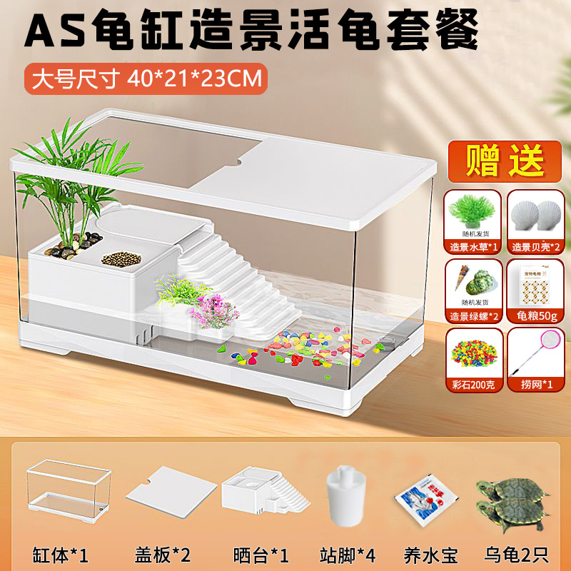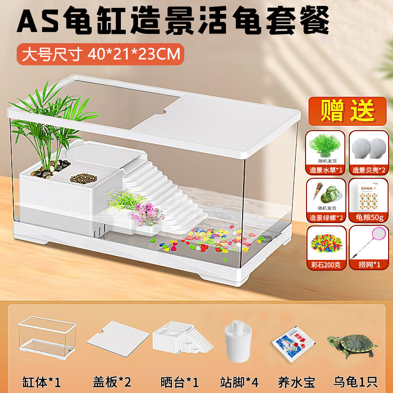 注:缸内内容为效果图,仅供参考,具体以套餐内容与实际比例为准,套餐内晒台不可种植水草,仅可以当食盆使用,绿植挂件可以另外单独购买。